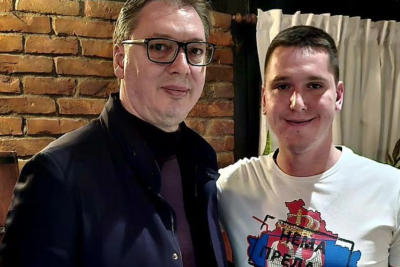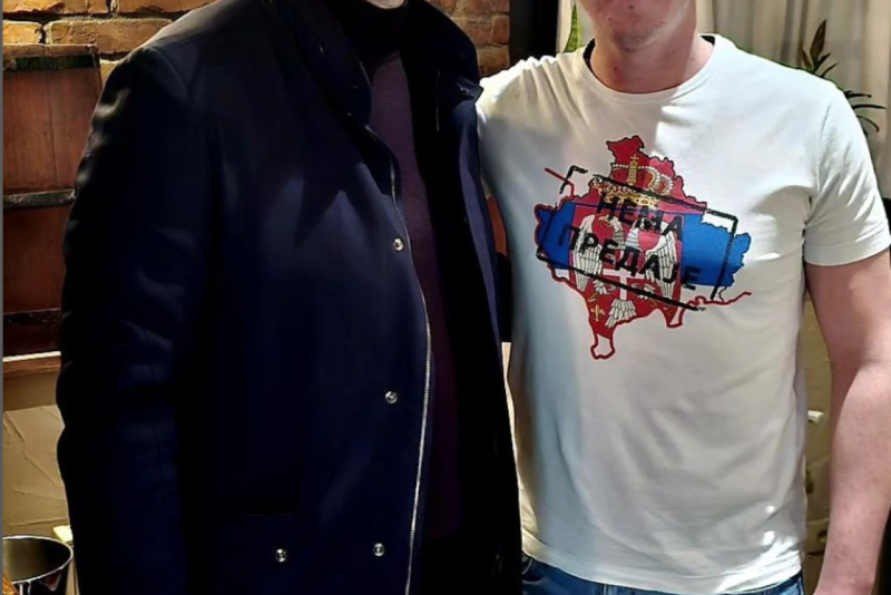 Danilo Vučić je na fotografiji u majici sa mapom Kosova i Metohije ukrašenom srpskom trobojkom i natpisom "nema predaje".