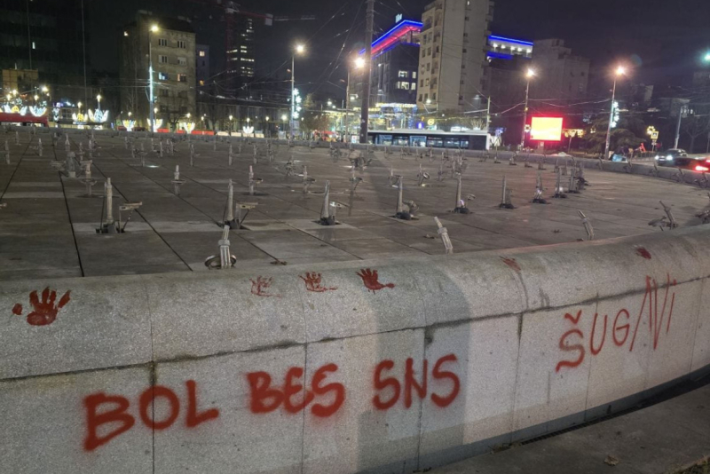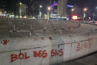 Na večerašnjem skupu na Trgu Slavija veća grupa okupljenih građana je ušla u samu fontanu na Slaviji i tom prilikom načinjena je šteta, saopšteno je iz JKP-a "Beogradski vodovod i kanalizacija".