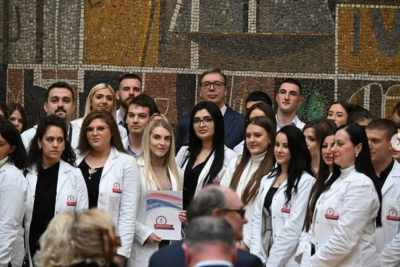 Vučić je čestitao najboljim diplomcima medicinskih fakulteta i srednjih medicinskih škola u Srbiji i poručio da su kao najbolji među svojim vršnjacima dobili poštovanje države i obavezu da leče ljude u Srbiji i pomognu im u očuvanju zdravlja.