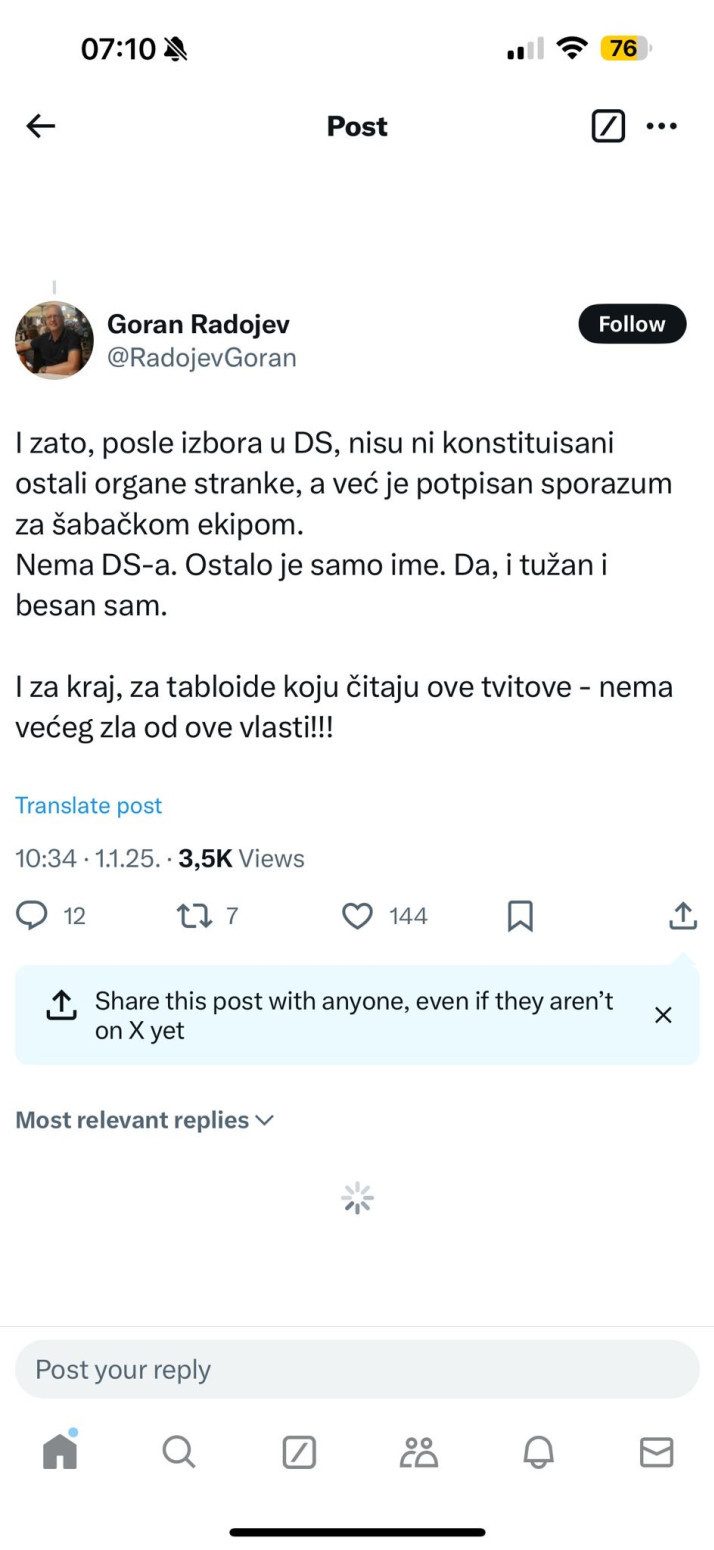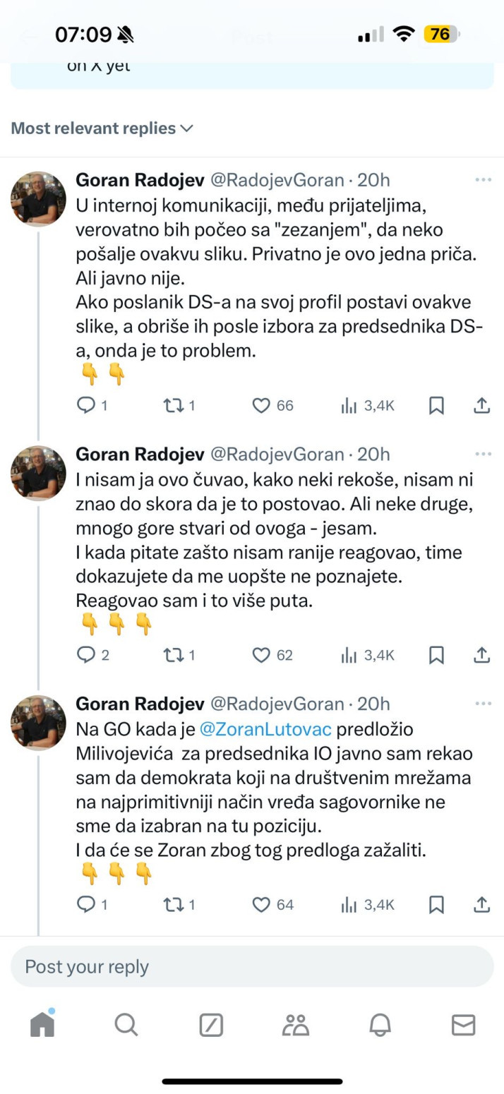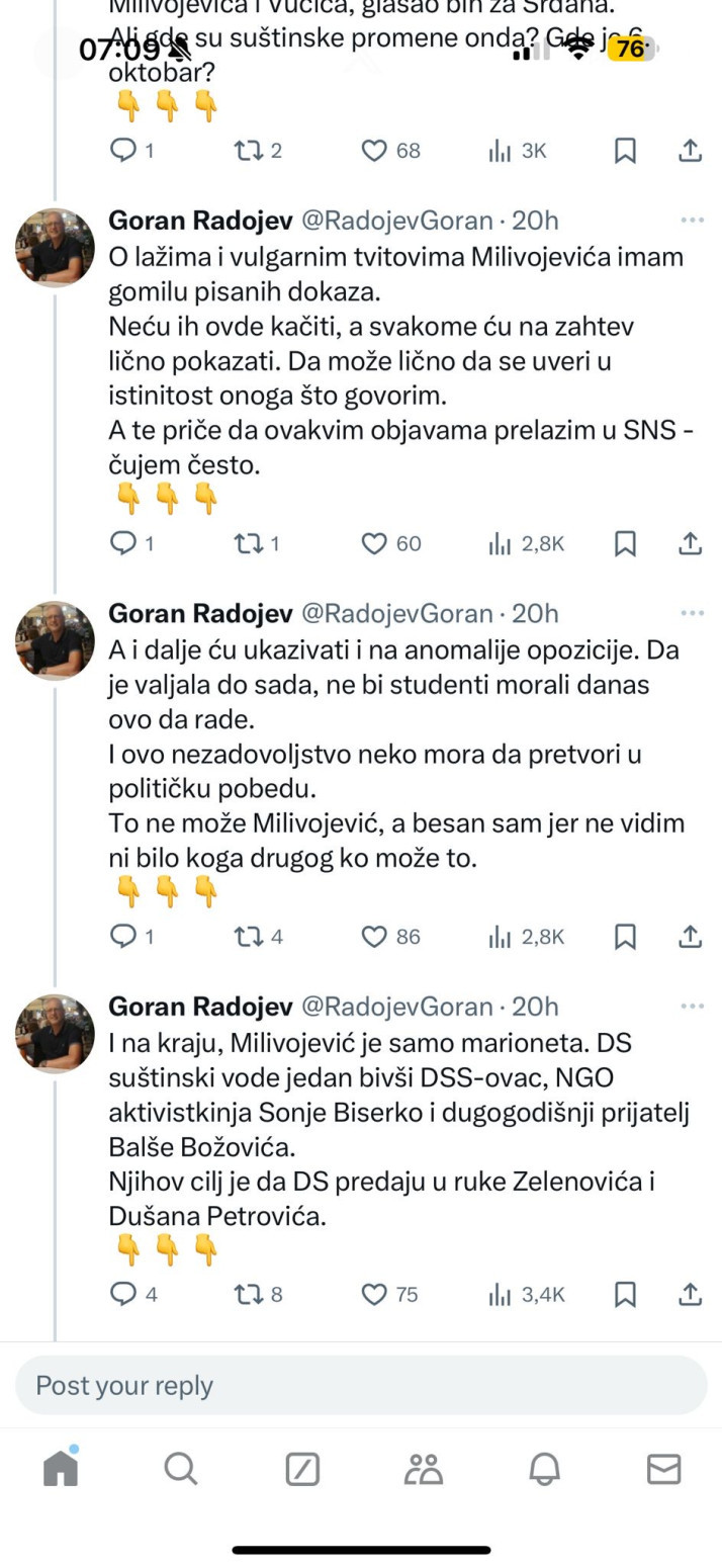 Bivši funkcioner Demokratske stranke Goran Radojev uputio je oštre reči Srđanu Milivojeviću, prenose mediji.