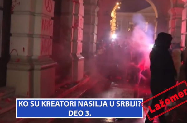 "Željni sukoba i krvoprolića, svoju mržnju iz kuća preneli su na ulicu. Kriju su iza maske 'ljubavi' prema otadžbini sa logistikom stranih agentura", piše "Lažomer" i dodaje: