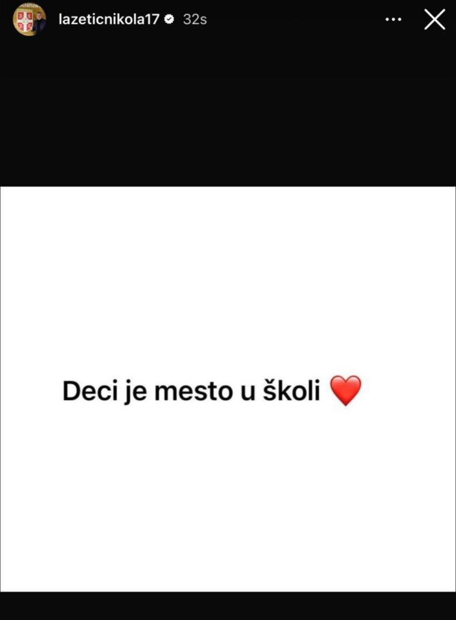 O situaciji koja trenutno postoji u malom delu škola u Srbiji, kao i pritiscima koji se stvaraju na roditelje i nastavnike i otvorenoj zloupotrebi dece u političke svrhe, oglasio se i fudbaler Nikola Lazetić.
