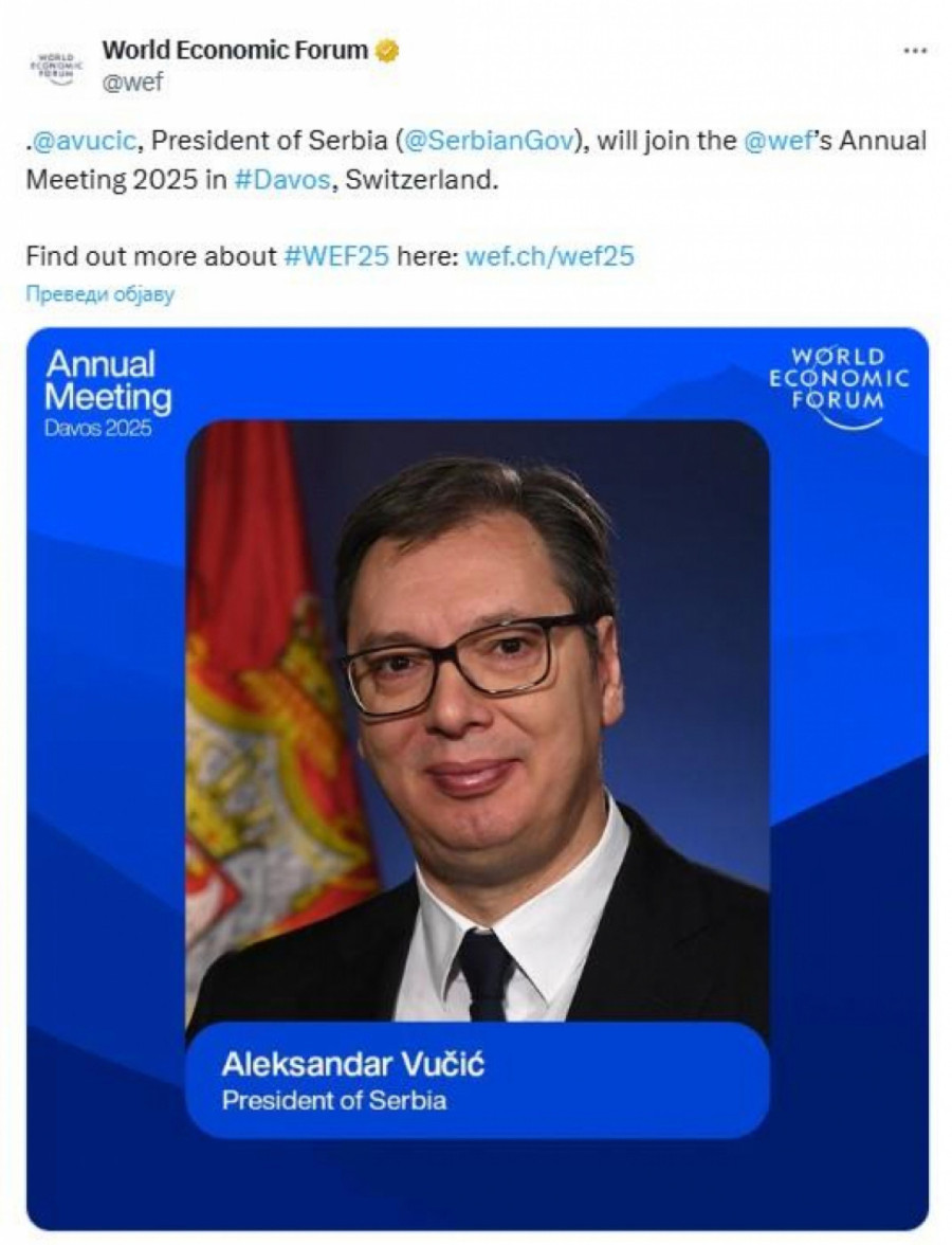 Naime, u pozivnici koju je Klaus Švab uputio predsedniku Vučiću, vidi se i da su sami organizatori ponudili da pripreme posebnu personalizovanu agendu.