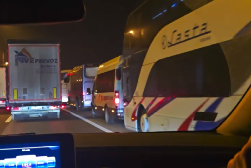 "Minut pred početak mitinga, još 150 autobusa nije stiglo ni do naplatne rampe", stoji u opisu objave.