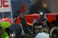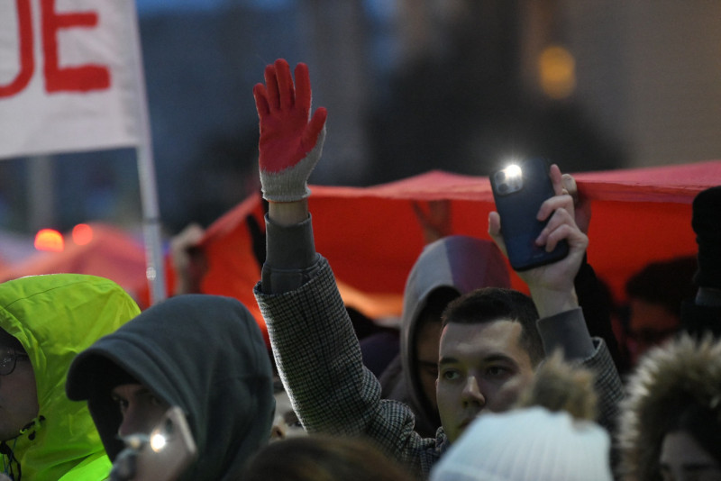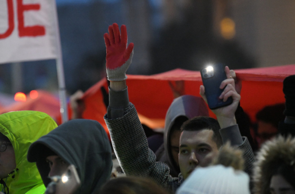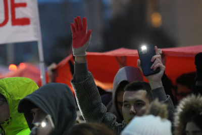 Elem, Šolak stoji iza demonstracija u Srbiji čiji je simbol „krvava ruka“. Učesnici blokada, glumci i javne ličnosti ispoljavaju svoju naklonost studentima, odnosno političke sklonosti, nošenjem crvene rukavice. I još duvaju u pištaljke. Nova, N1 Danas, Radar… danima, mesecima pozivaju na proteste, malo malo pa je u kadru neka crvena rukavica, ili nacrtana crvena ruka. Samo što ne počnu da emituju Lazarevu kletvu: Ko ne dođe na protest…