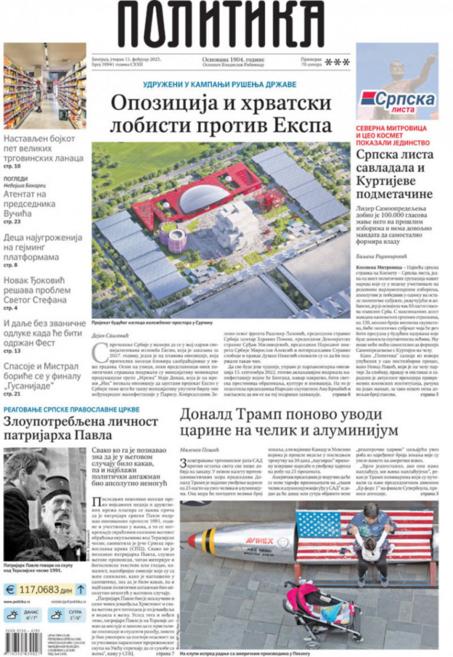 Dnevne novine u Srbiji za utorak, 11. februar 2025. godine, na naslovnim stranama najavljuju brojne aktuelne društveno-političke teme i donose ekskluzivne priče.