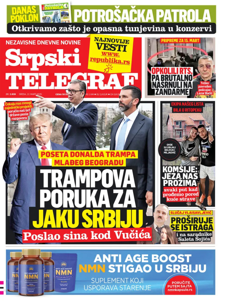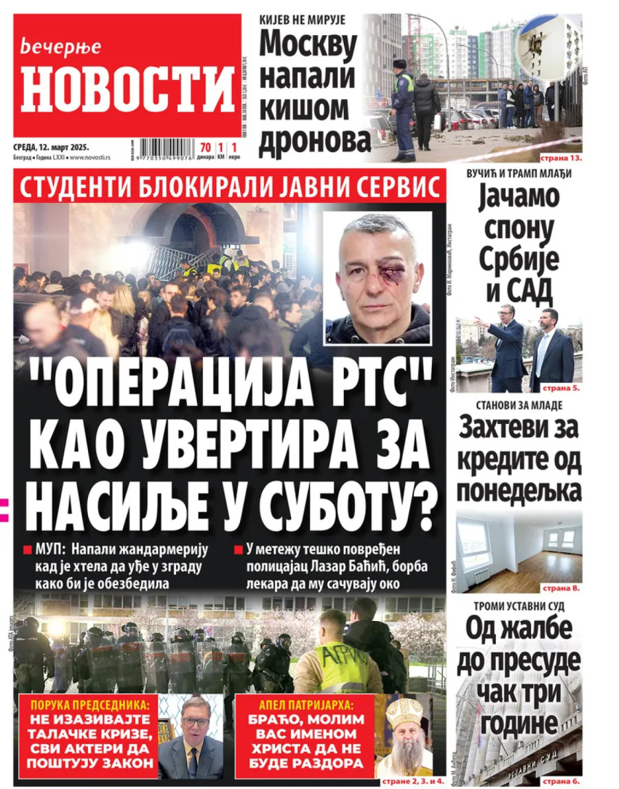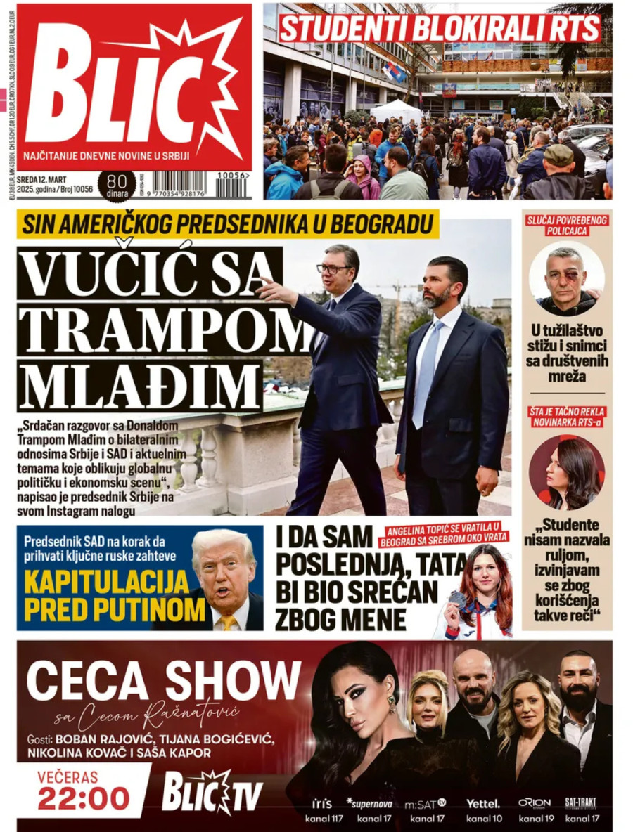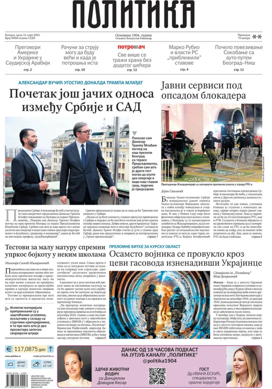 Dnevne novine u Srbiji za sredu 12. mart 2025. godine, na naslovnim stranama najavljuju brojne aktuelne društveno-političke teme i donose ekskluzivne priče.