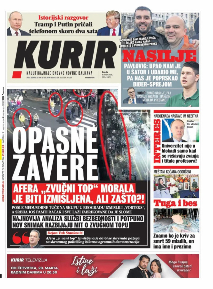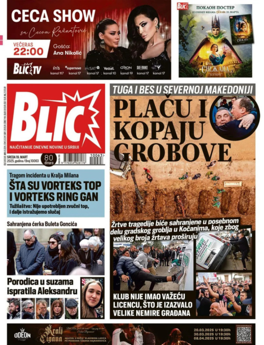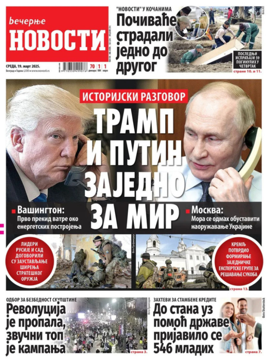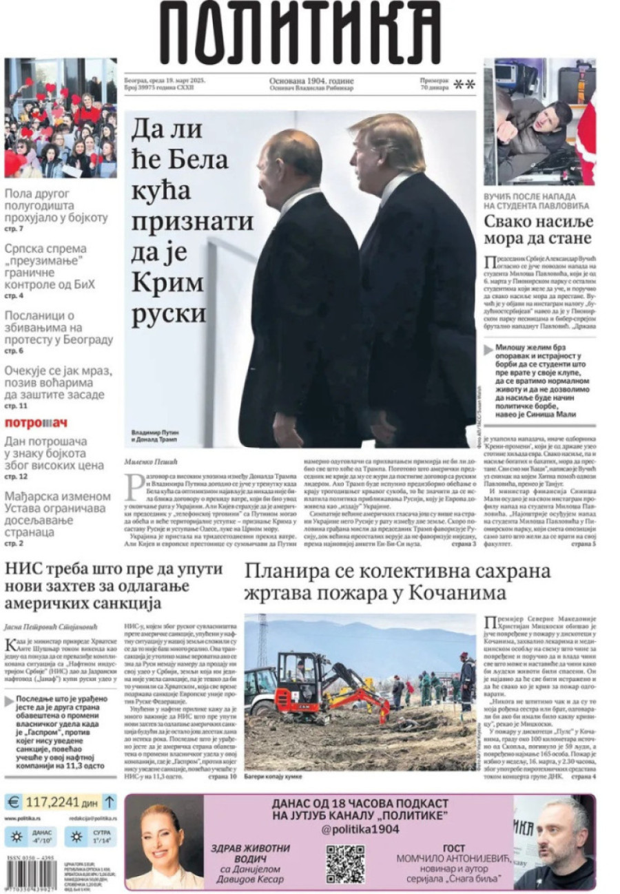Dnevne novine u Srbiji za sredu, 19. mart 2025. godine, na naslovnim stranama najavljuju brojne aktuelne društveno-političke teme i donose ekskluzivne priče.