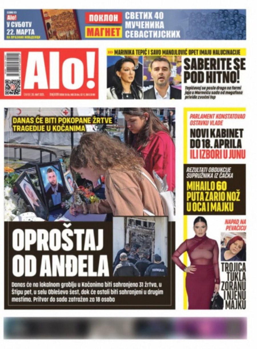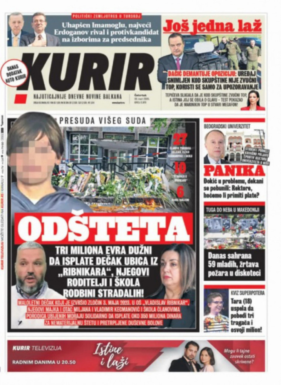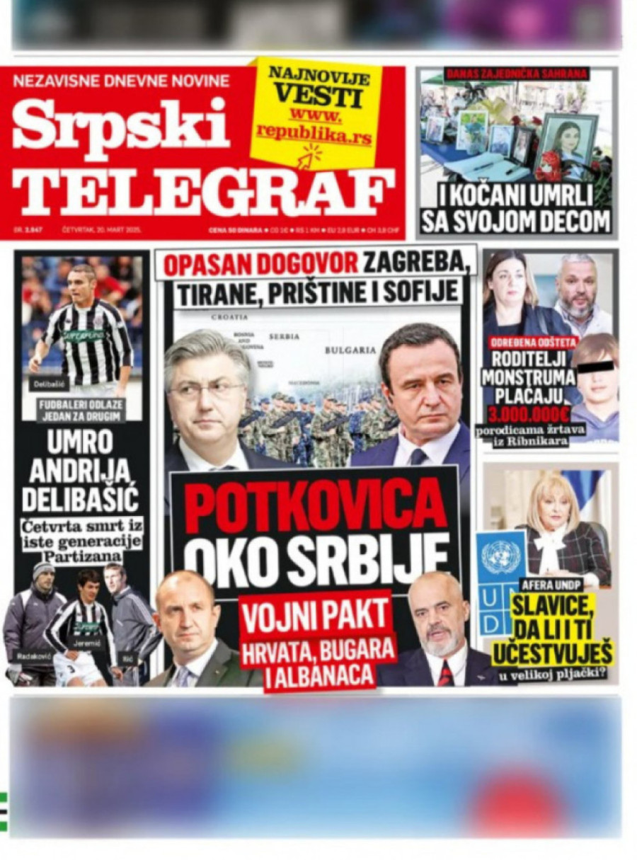 Dnevne novine u Srbiji za četvrtak, 20. mart 2025. godine, na naslovnim stranama najavljuju brojne aktuelne društveno-političke teme i donose ekskluzivne priče.