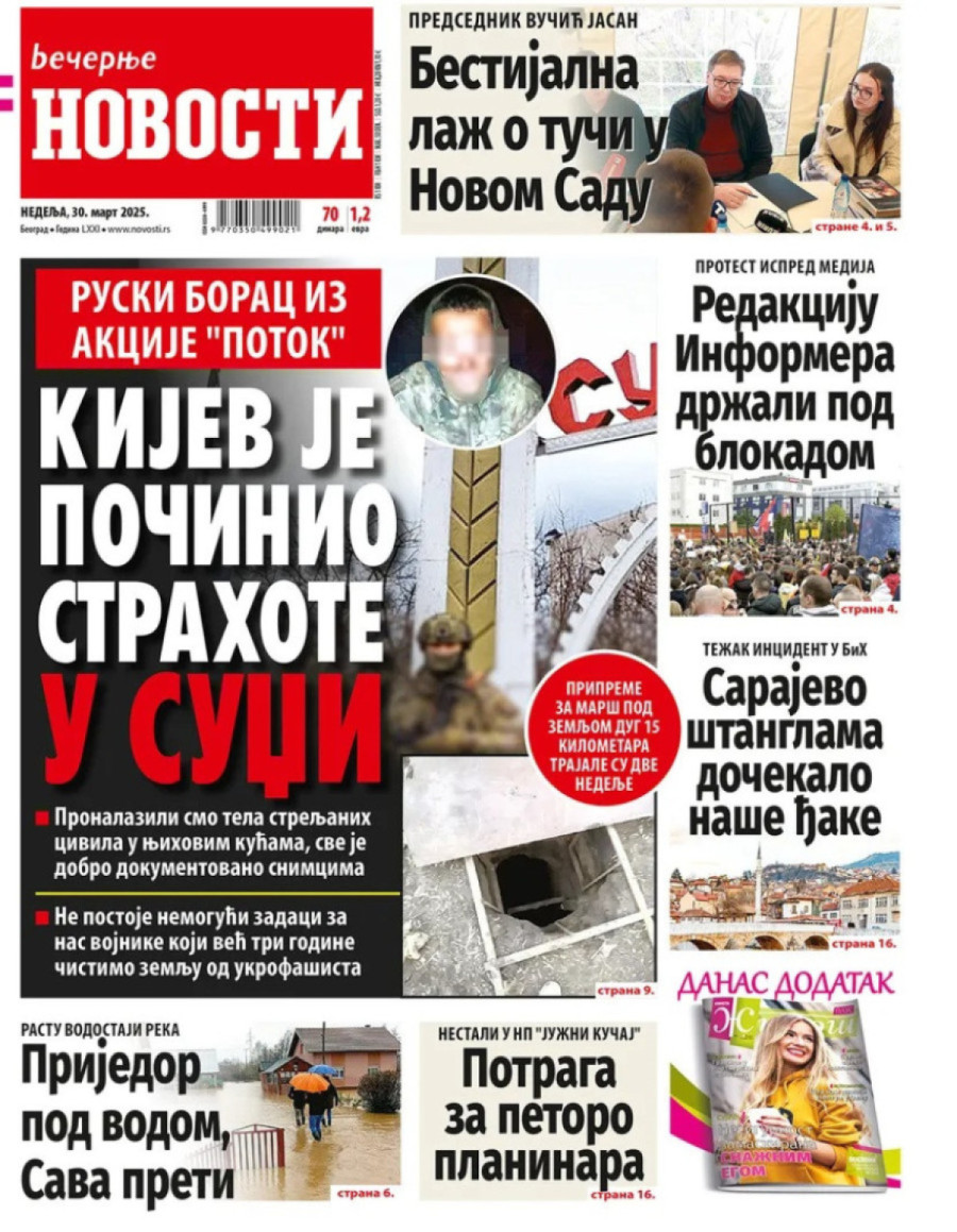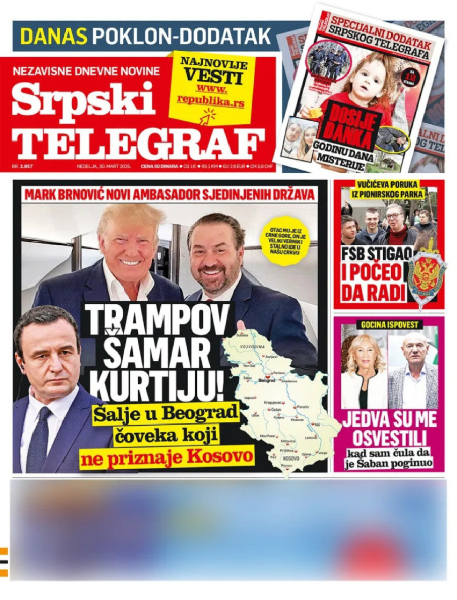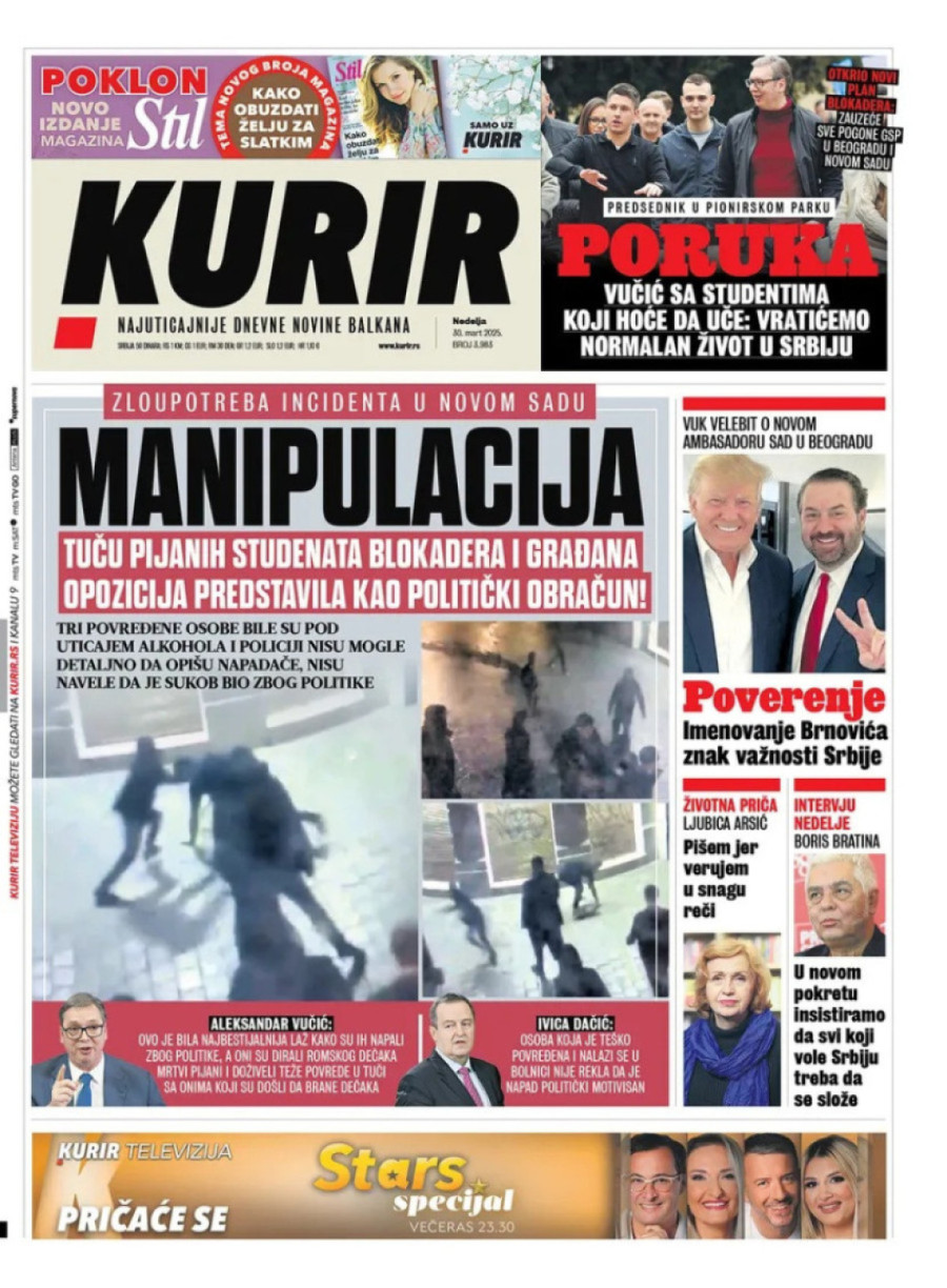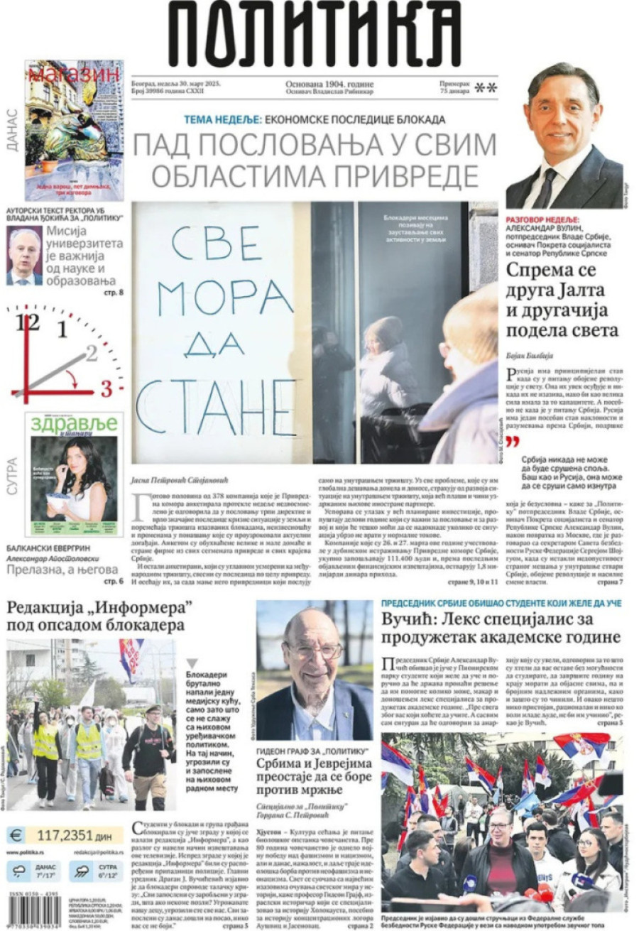 Dnevne novine u Srbiji za nedelju, 30. mart 2025. godine, na naslovnim stranama najavljuju brojne aktuelne društveno-političke teme i donose ekskluzivne priče.