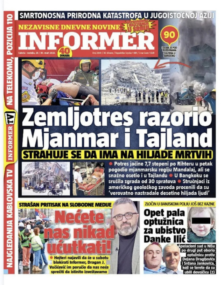 Novine: "Pad poslovanja u svim oblastima privrede"; "Redakcija Informera pod opsadom blokadera"