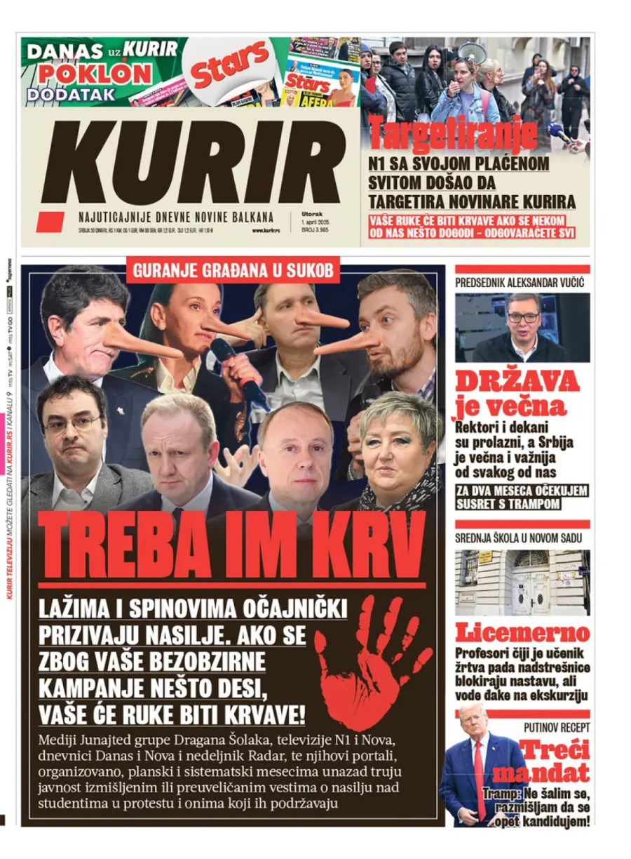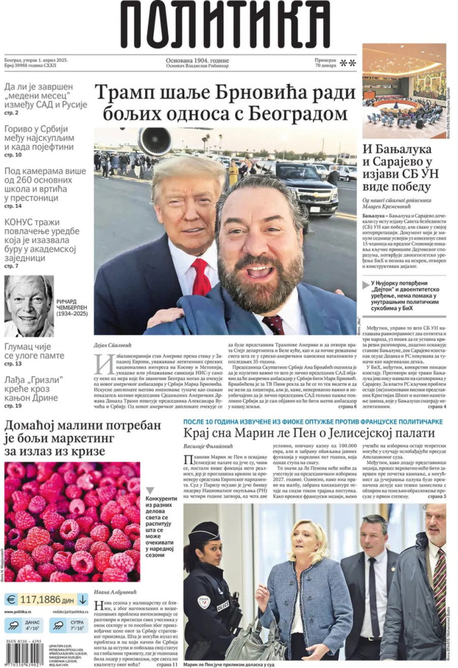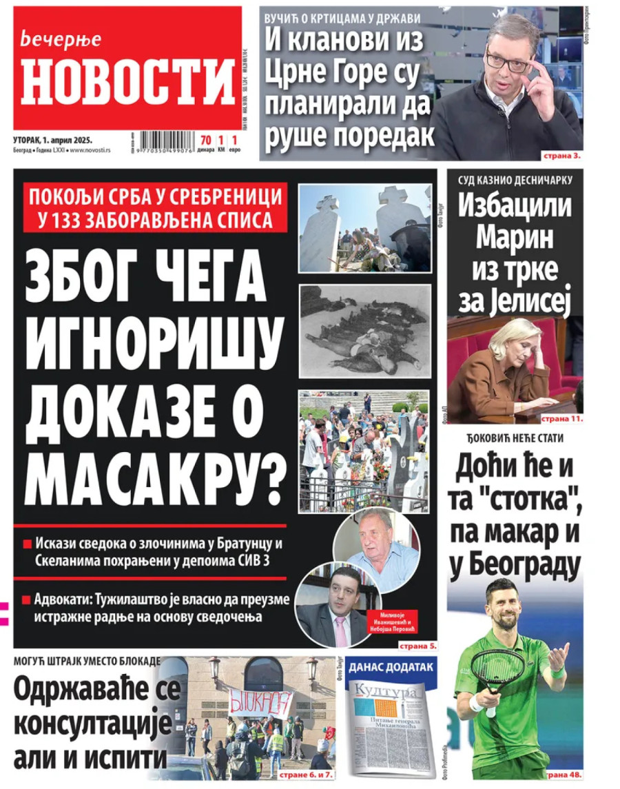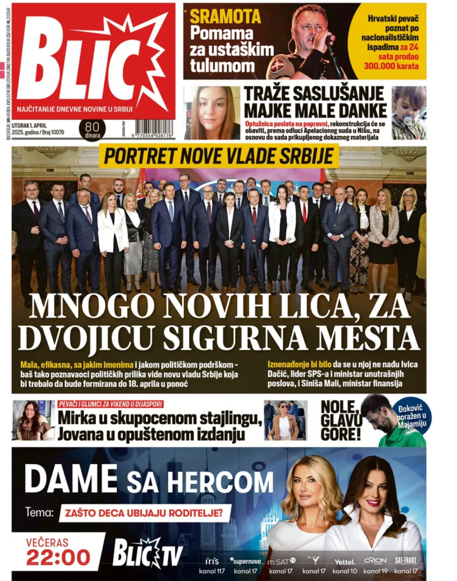 Dnevne novine u Srbiji za utorak, 1. april 2025. godine, na naslovnim stranama najavljuju brojne aktuelne društveno-političke teme i donose ekskluzivne priče.