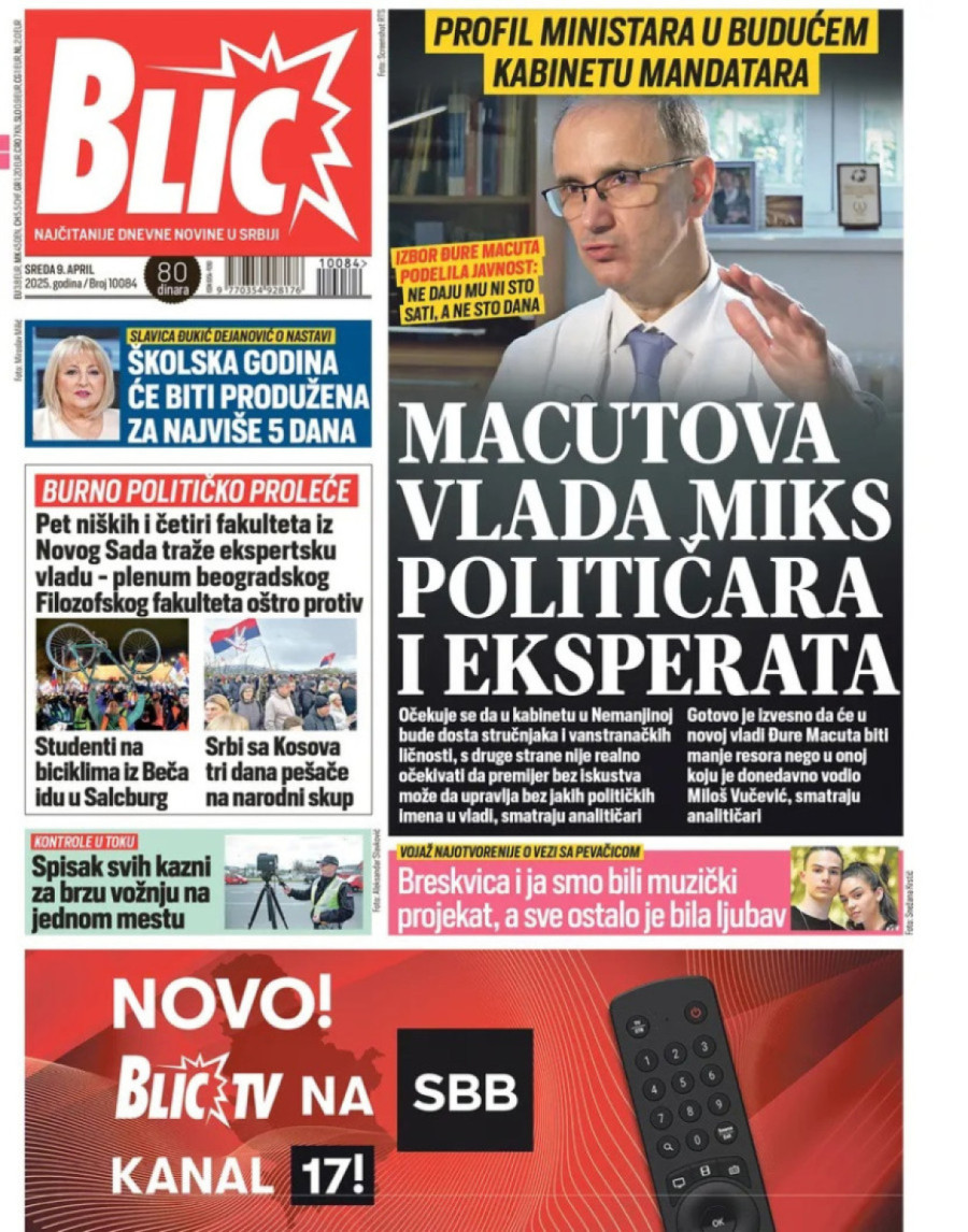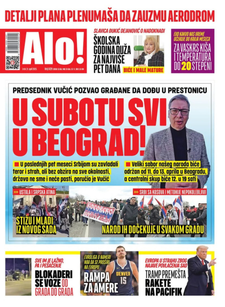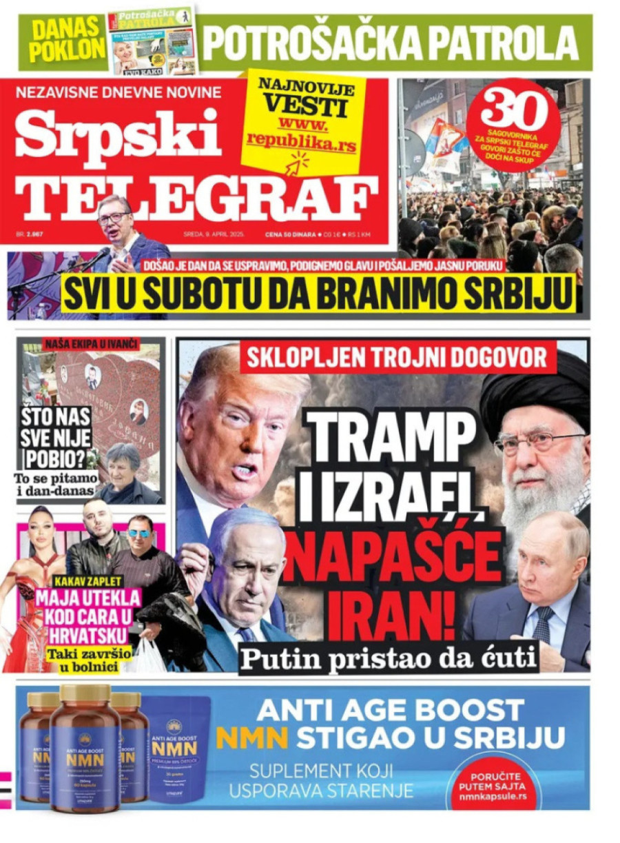 Dnevne novine u Srbiji za sredu 9. april 2025. godine, na naslovnim stranama najavljuju brojne aktuelne društveno-političke teme i donose ekskluzivne priče.