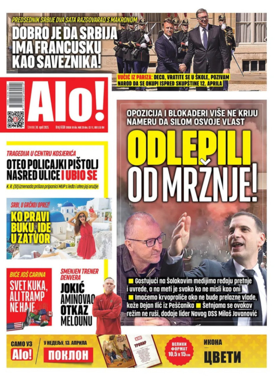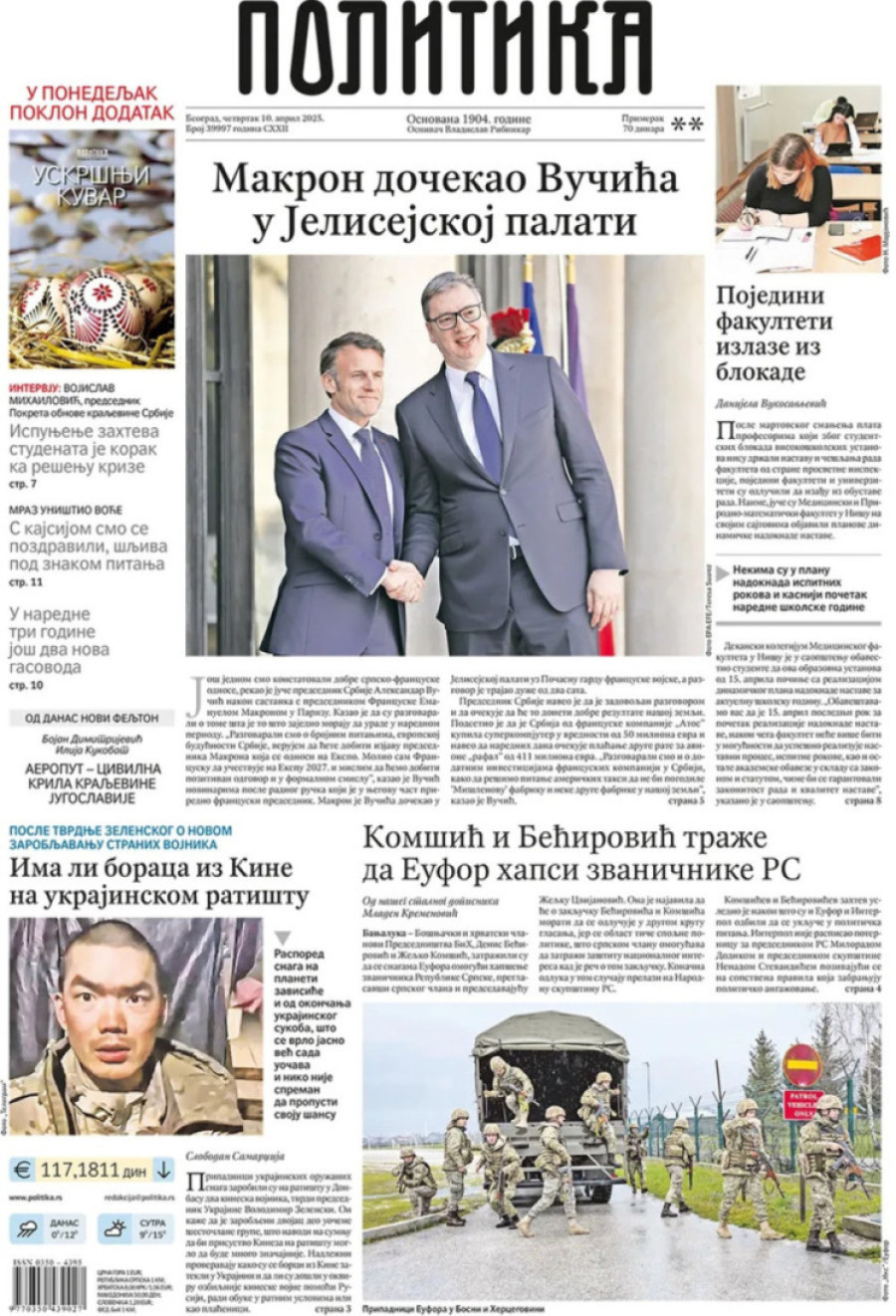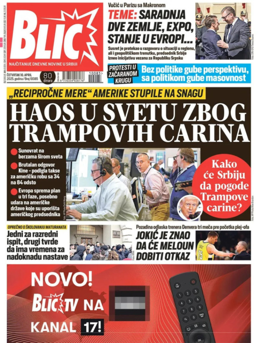 Dnevne novine u Srbiji za četvrtak 10. april 2025. godine, na naslovnim stranama najavljuju brojne aktuelne društveno-političke teme i donose ekskluzivne priče.