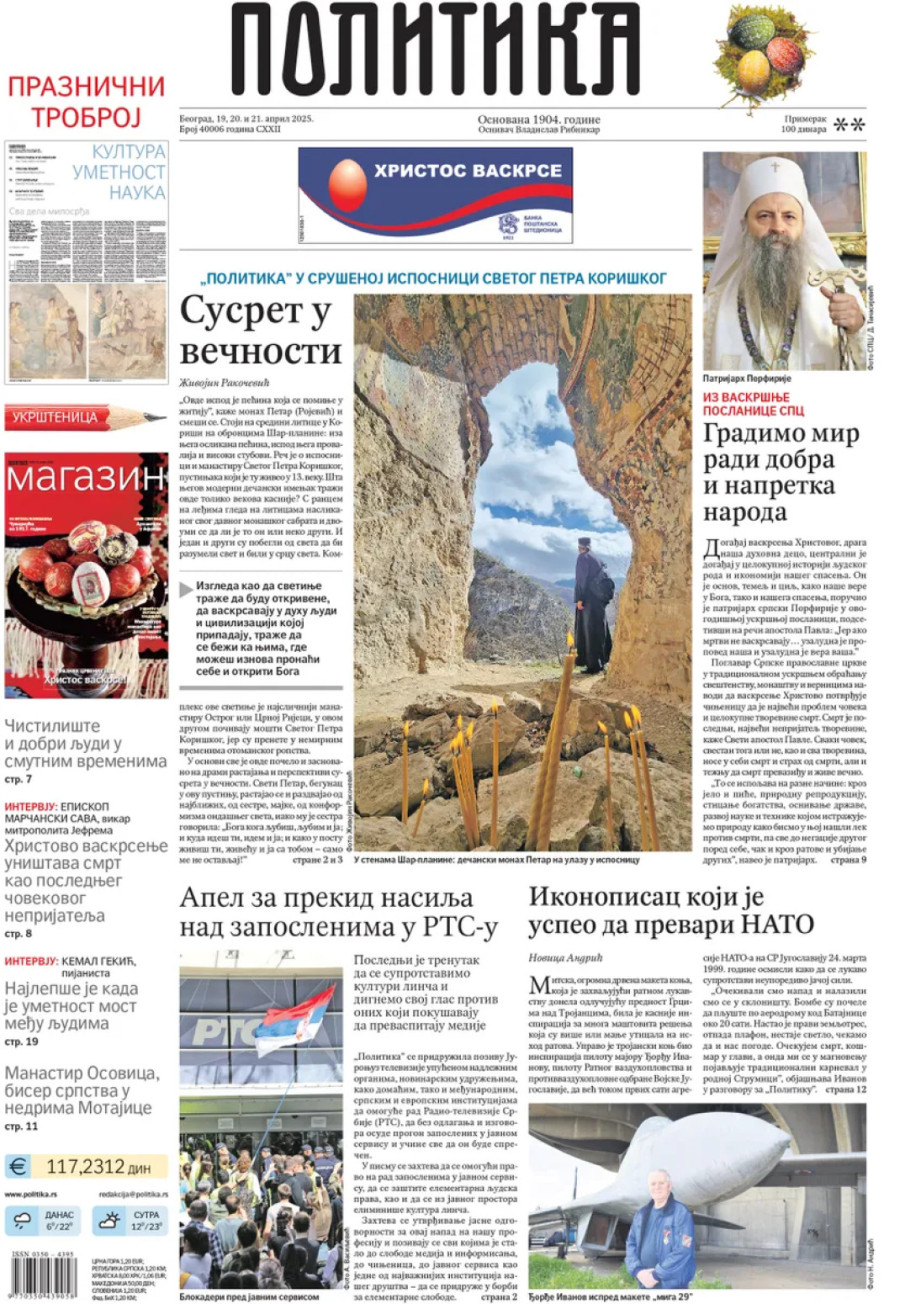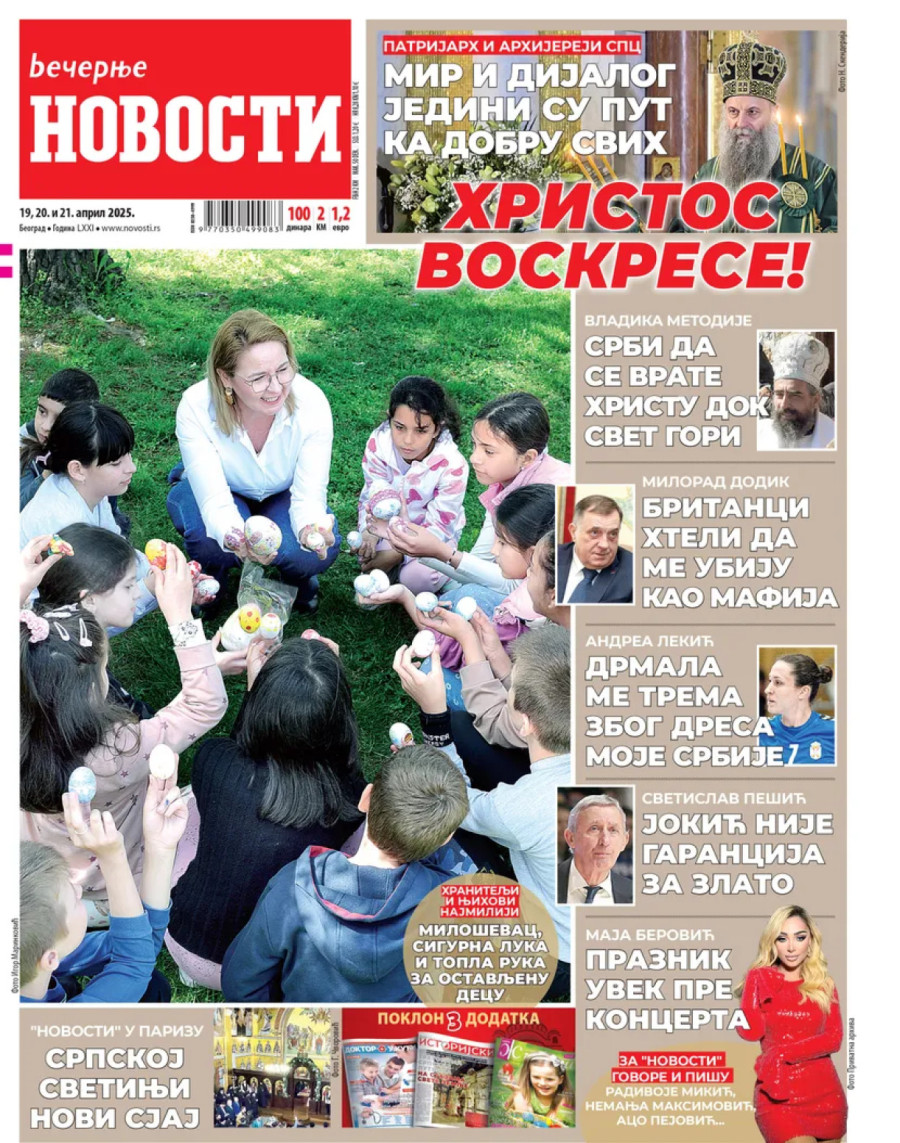 Dnevne novine u Srbiji za Uskrs, 20. april 2025. godine