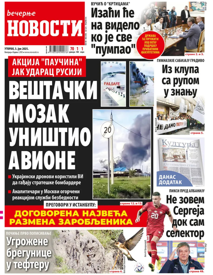Dnevne novine u Srbiji za utorak, 3. jun 2025. godine, na naslovnim stranama najavljuju brojne aktuelne društveno-političke teme i donose ekskluzivne priče.