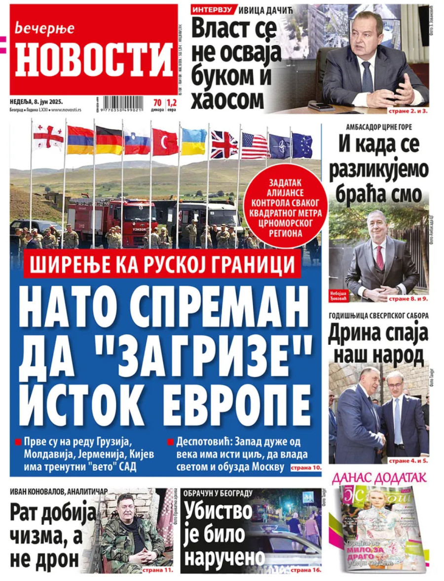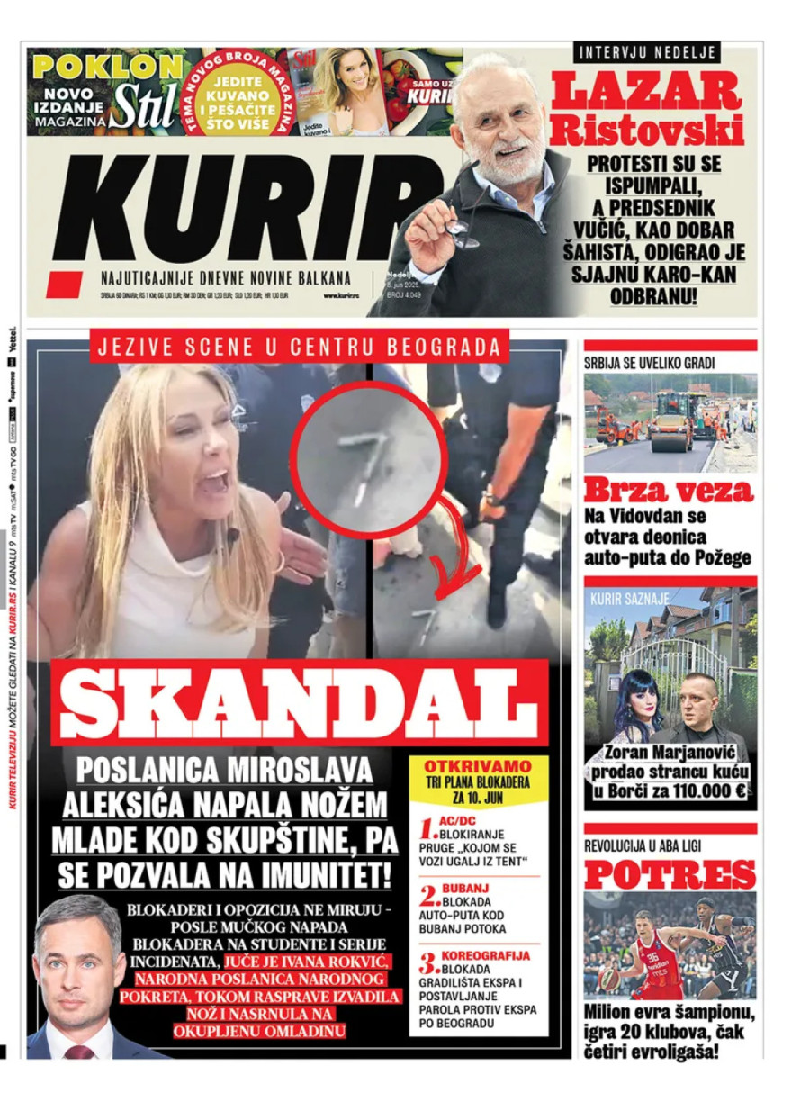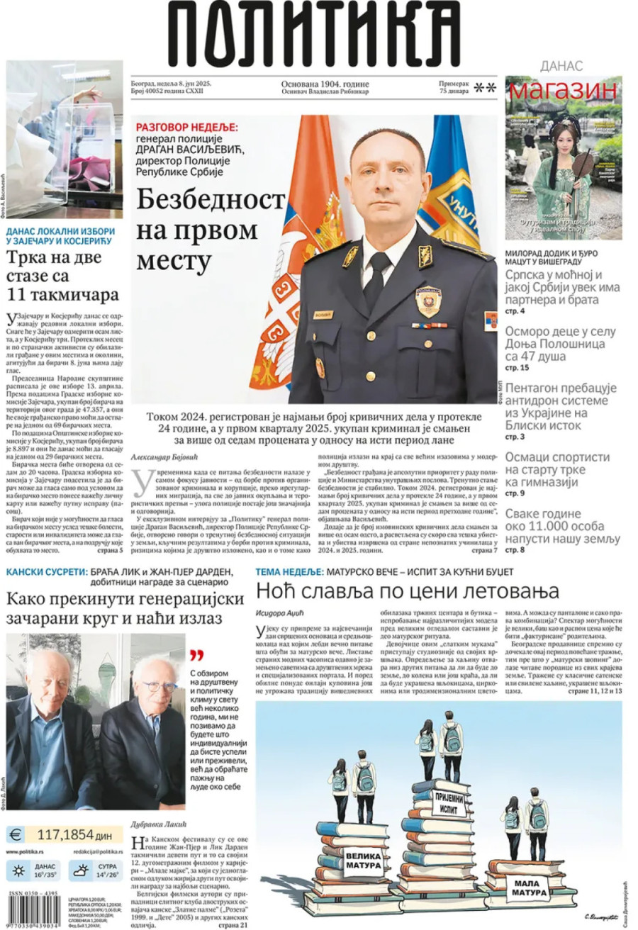 Dnevne novine u Srbiji za nedelju, 8. jun 2025. godine, na naslovnim stranama najavljuju brojne aktuelne društveno-političke teme i donose ekskluzivne priče.