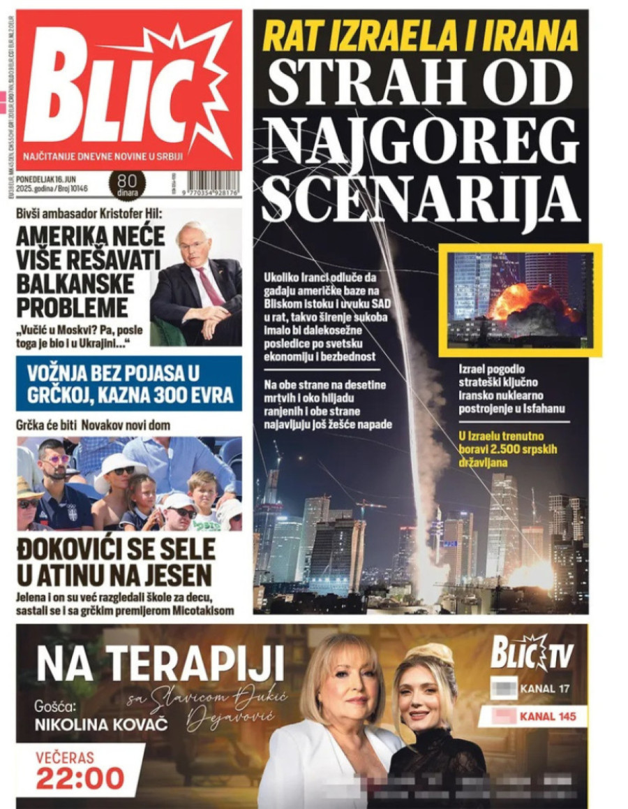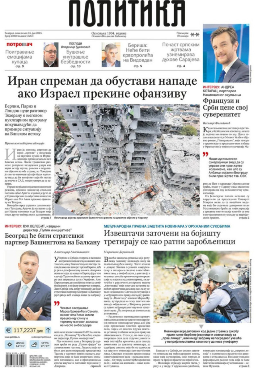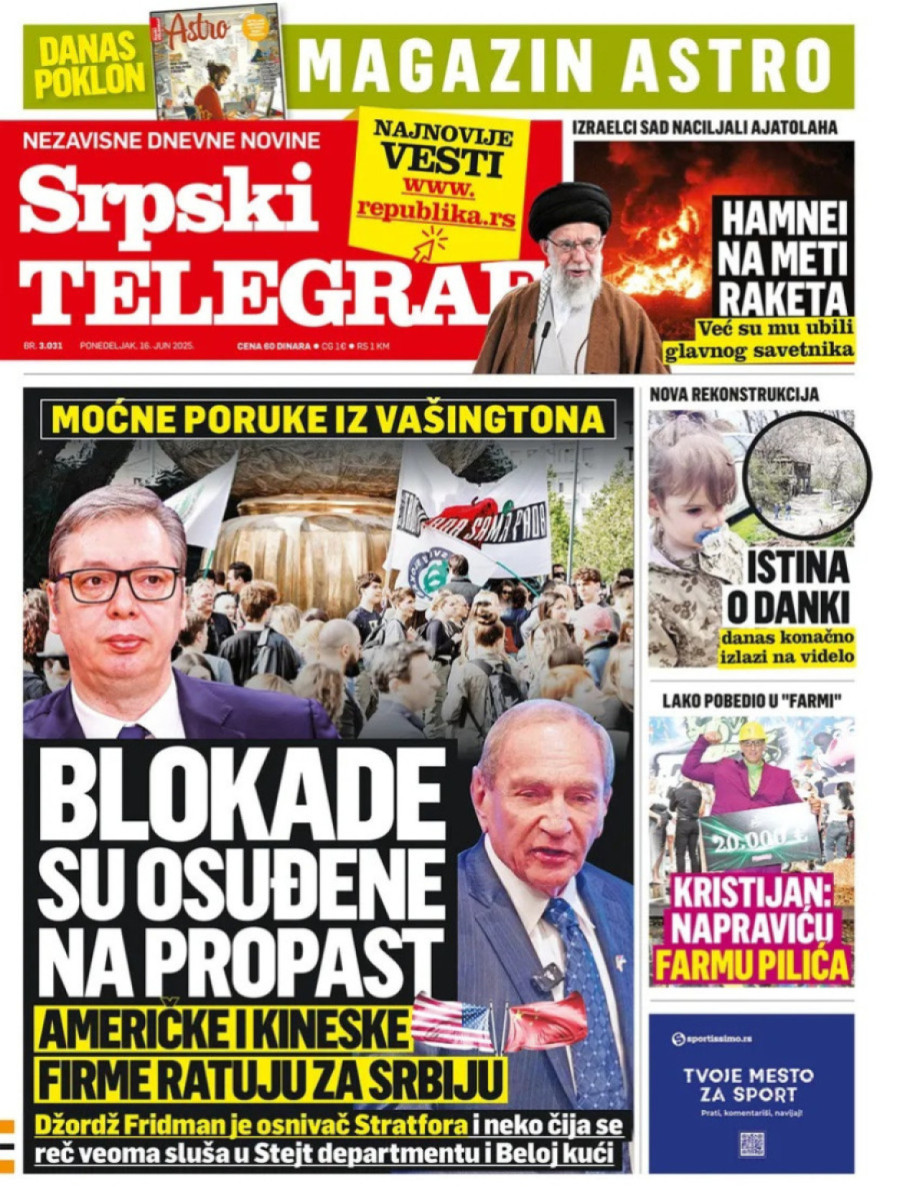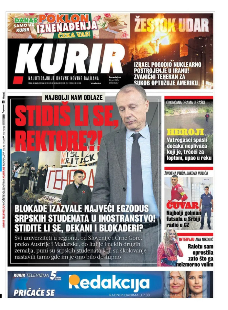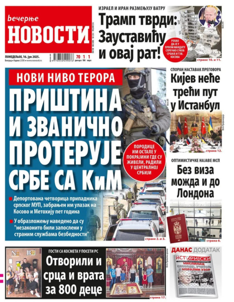 Dnevne novine u Srbiji za ponedeljak, 16. jun 2025. godine, na naslovnim stranama donose brojne aktuelne društveno-političke teme i ekskluzivne priče.