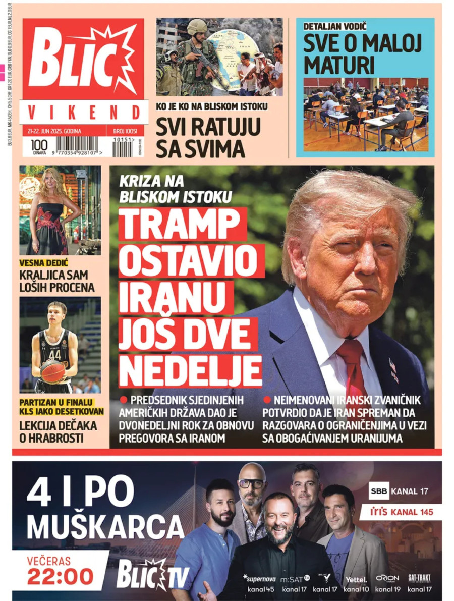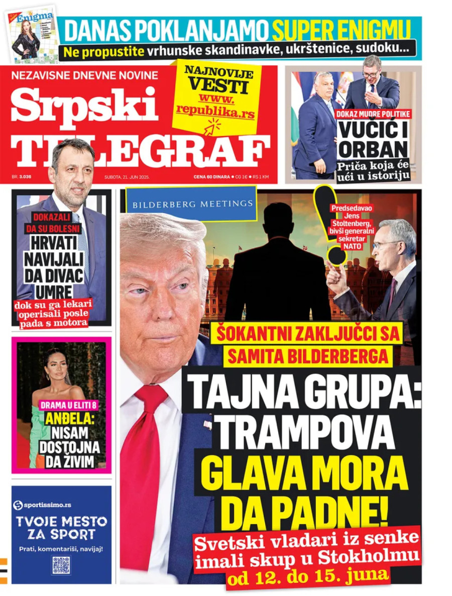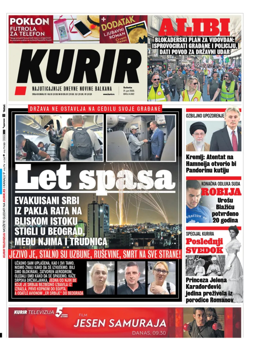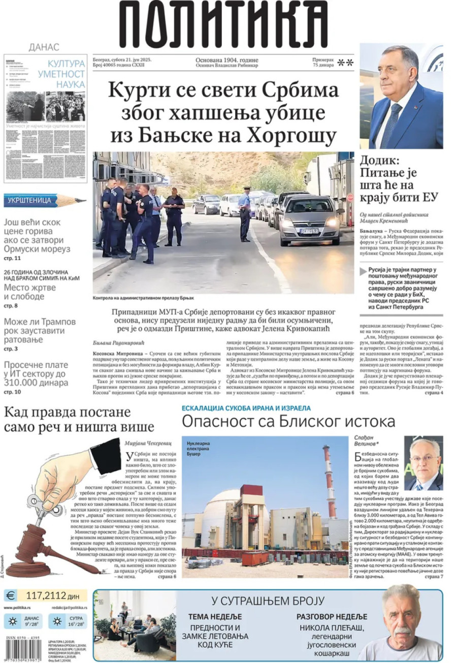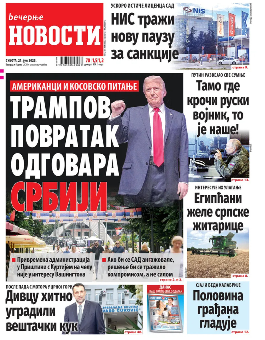Dnevne novine u Srbiji za subotu, 21. jun 2025. godine, na naslovnim stranama najavljuju brojne aktuelne društveno-političke teme i donose eksluzivne priče.