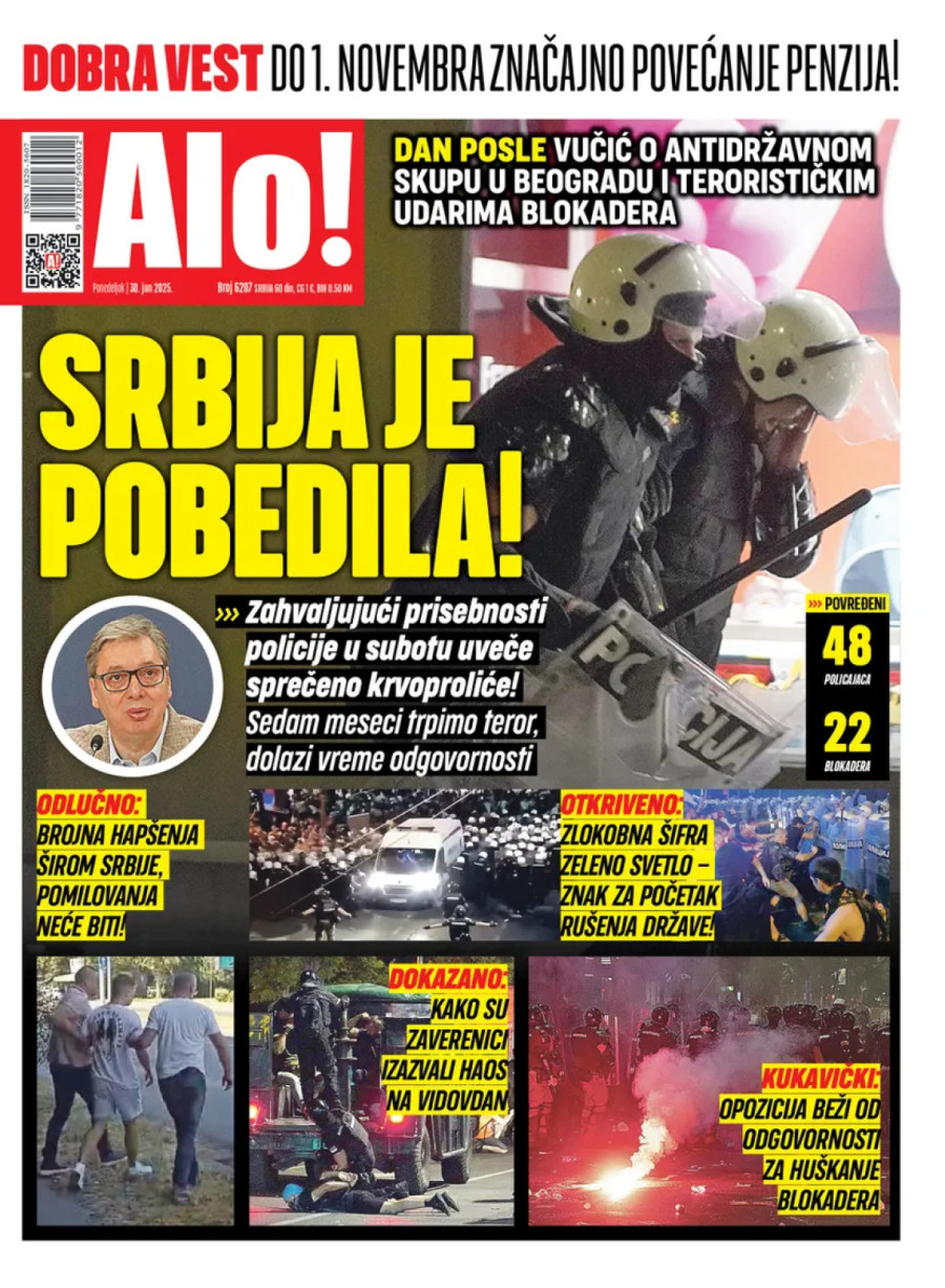 Novine: "Povređeno 48 policajaca, privedeno 77 osoba"; "Od sutra biranje srednje škole"