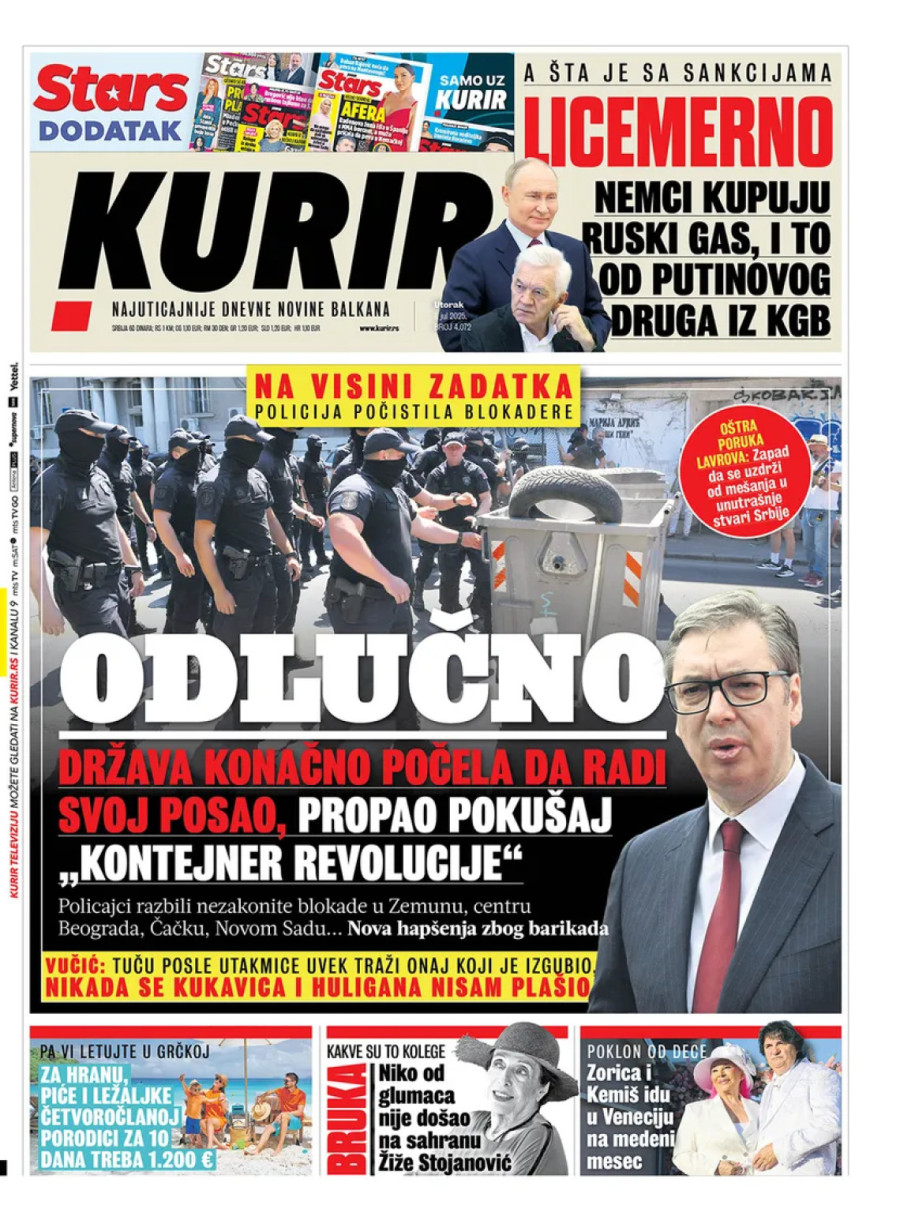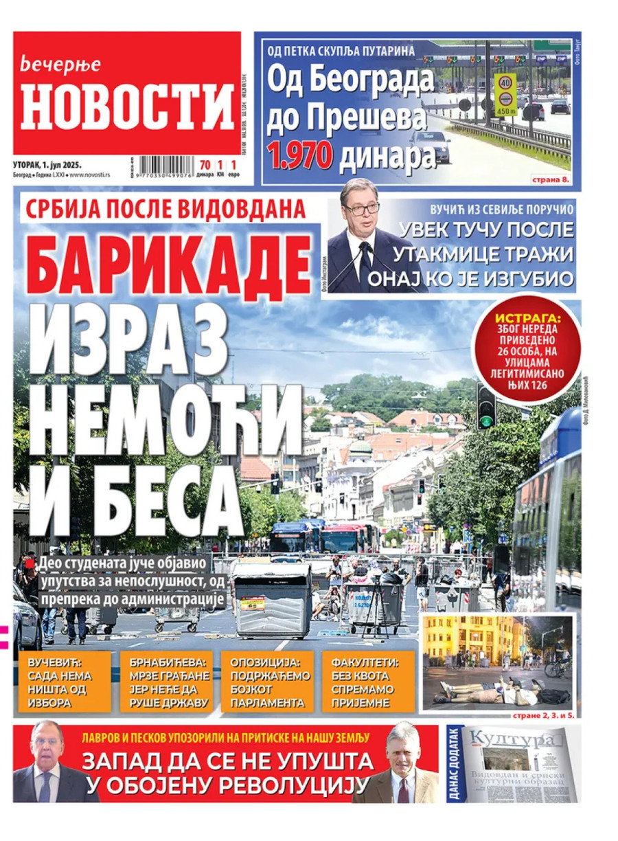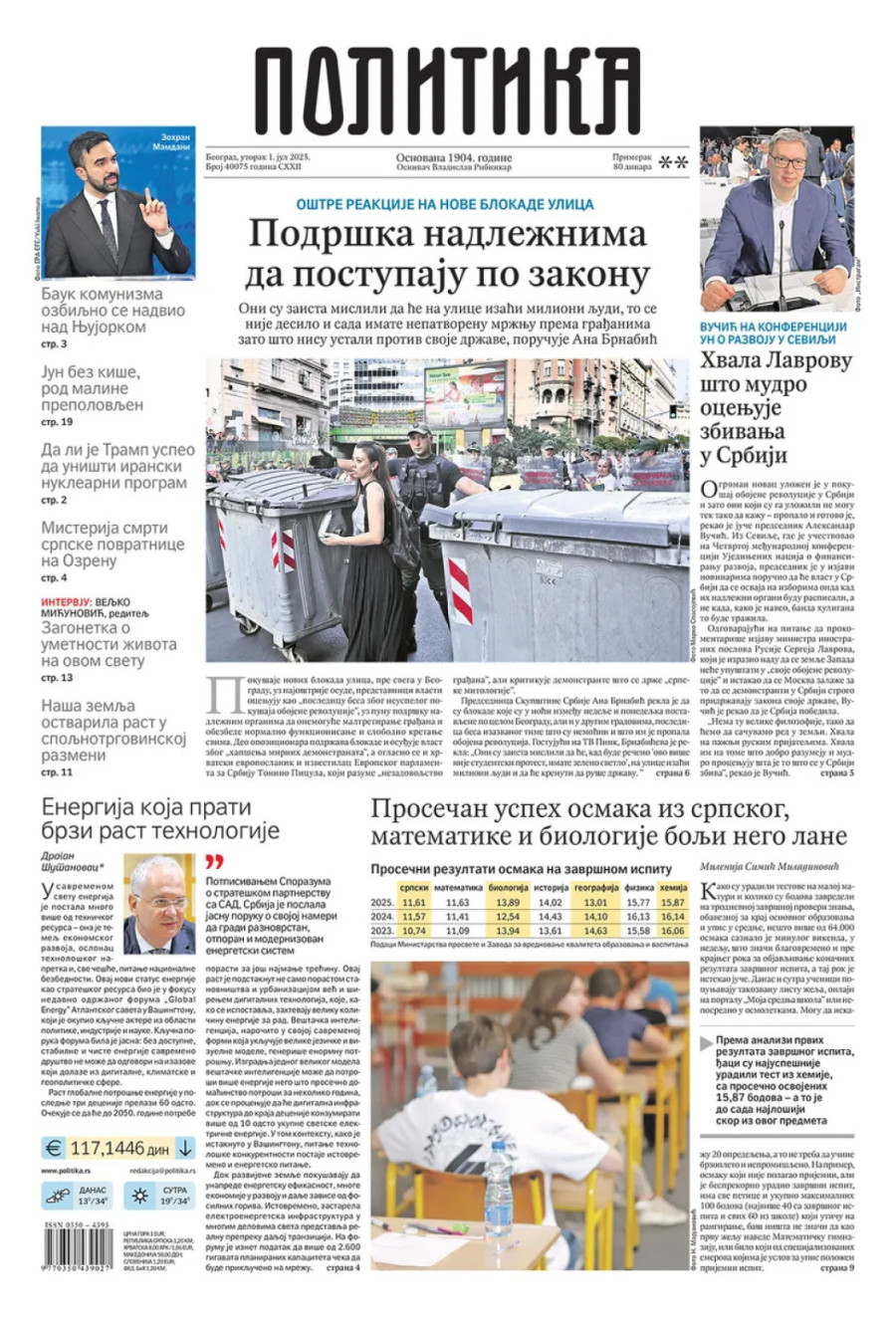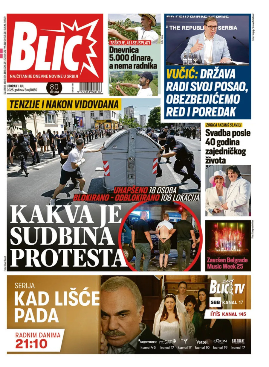 Dnevne novine u Srbiji za utorak, 1. jul 2025. godine, na naslovnim stranama najavljuju brojne aktuelne društveno-političke teme i donose eksluzivne priče.