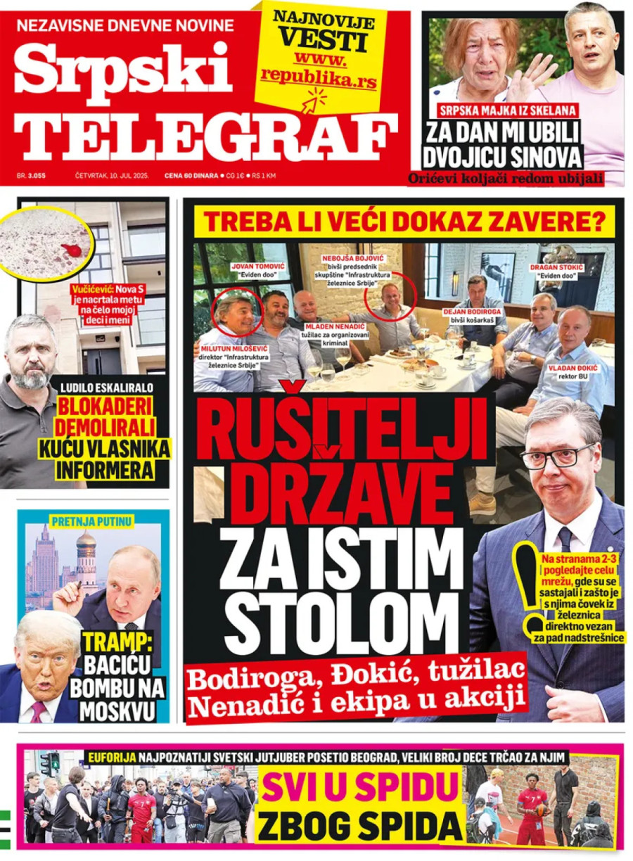 U emisiji "Utisak nedelje", voditeljke Olje Bećković, gostovao je Boris Kojčinović, blokader sa Filozofskog fakulteta Univerziteta u Novom Sadu koji je izneo zvaničan stav tzv. studentskog pokreta, preneli su mediji.