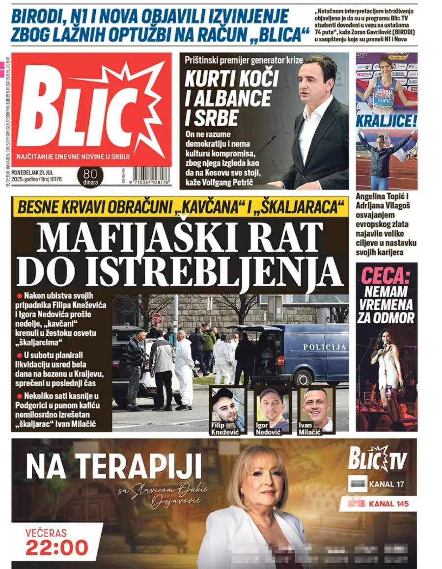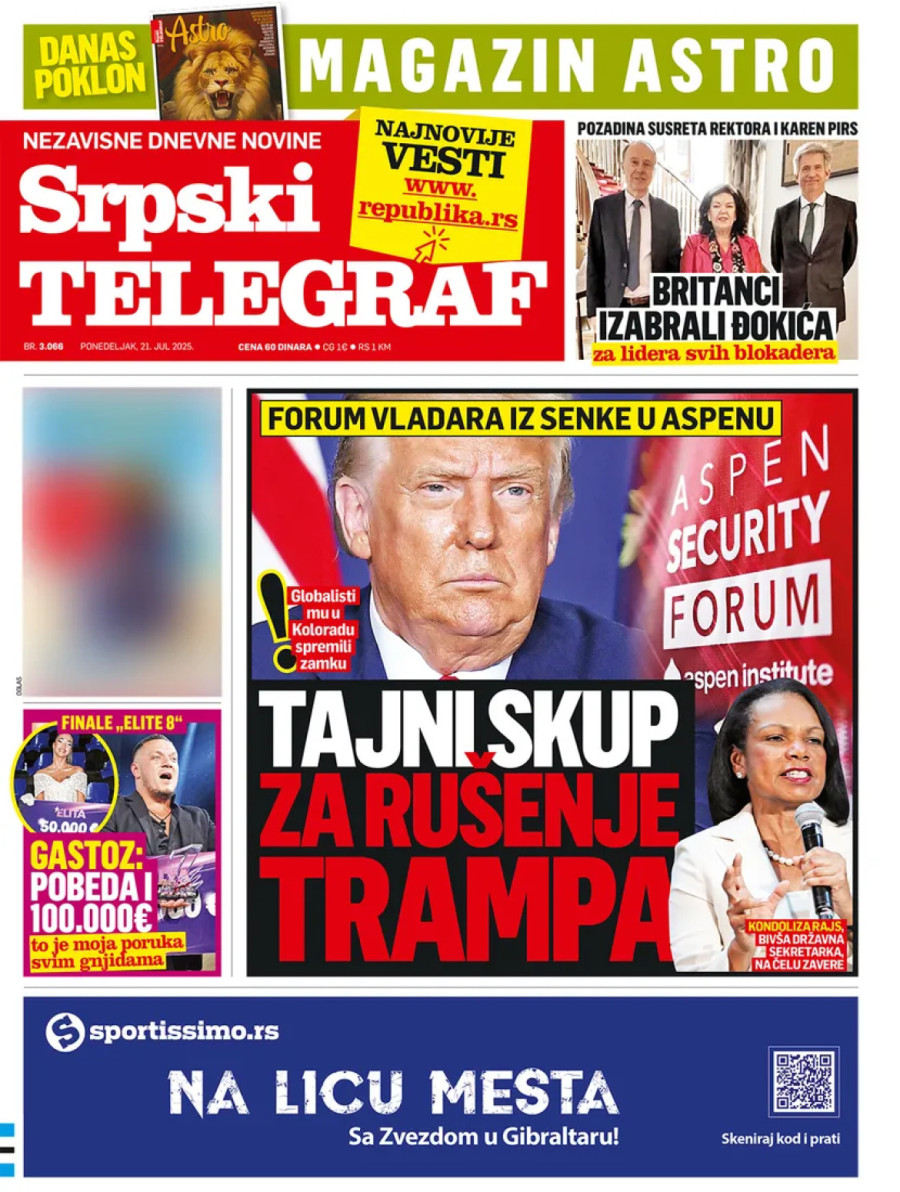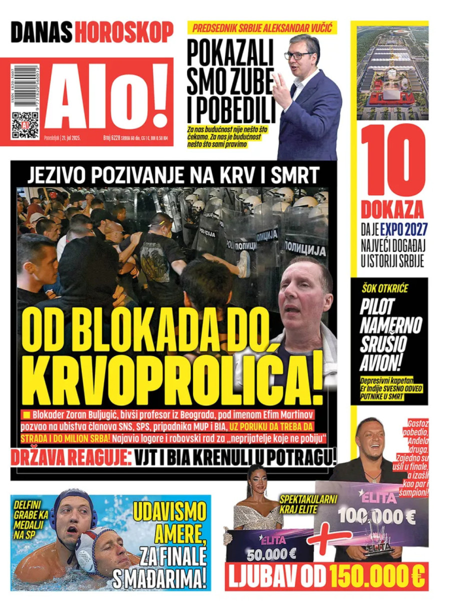 Dnevne novine u Srbiji za ponedeljak, 21. jul 2025. godine, na naslovnim stranama donose brojne aktuelne društveno-političke teme i eksluzivne priče.