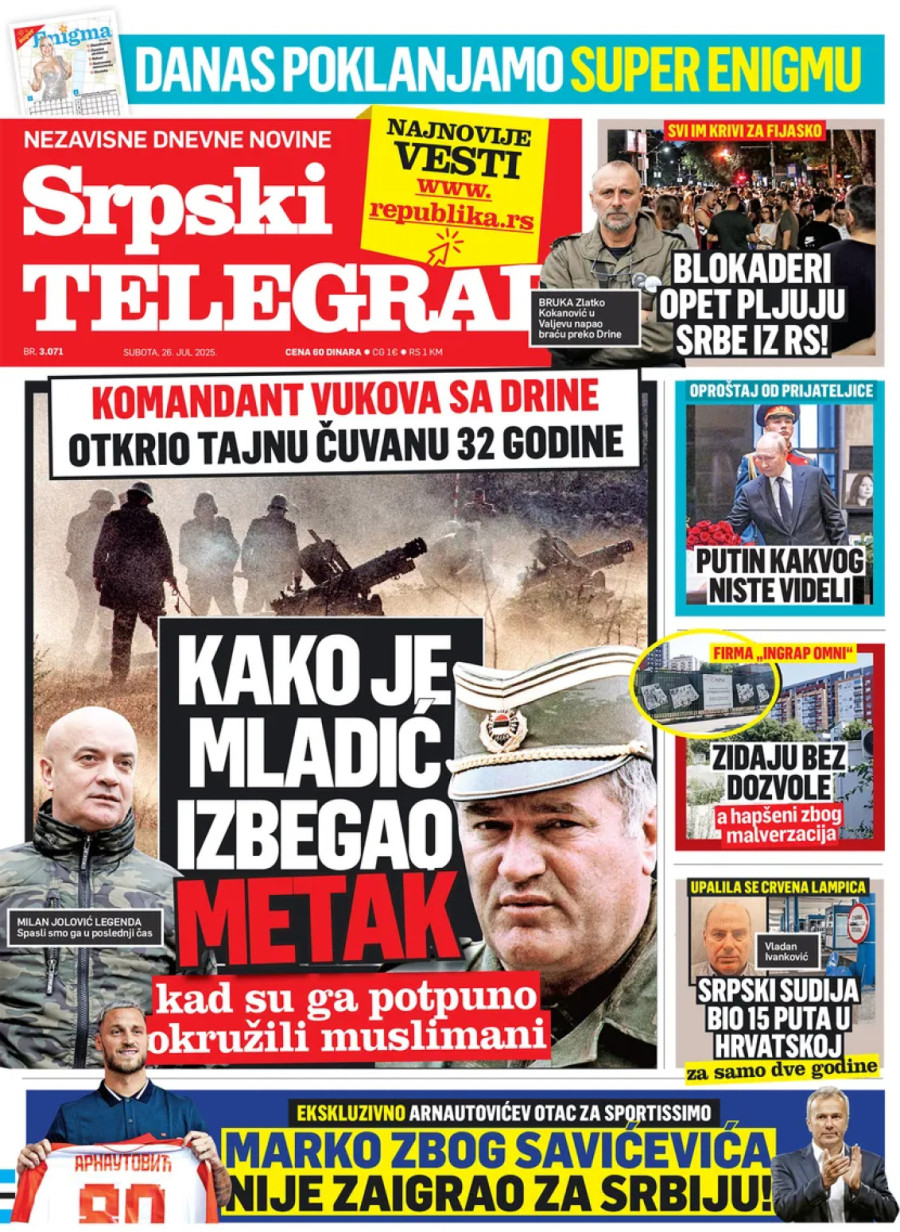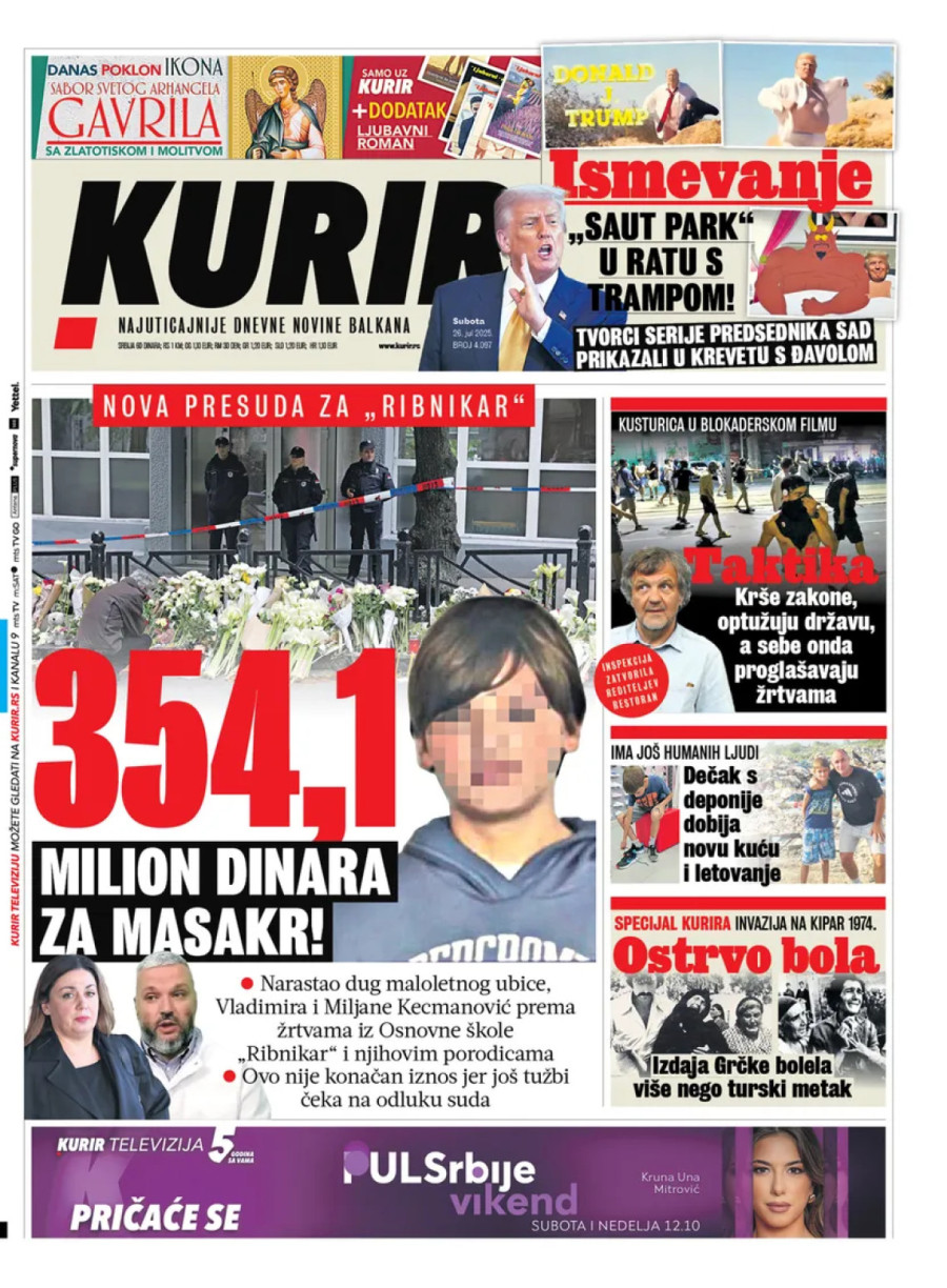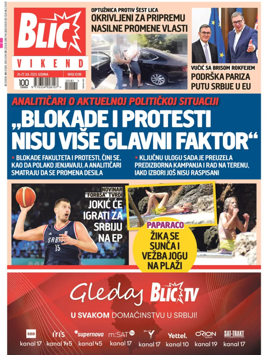Dnevne novine u Srbiji za subotu, 26. jul 2025. godine, na naslovnim stranama najavljuju brojne aktuelne društveno-političke teme i donose eksluzivne priče.