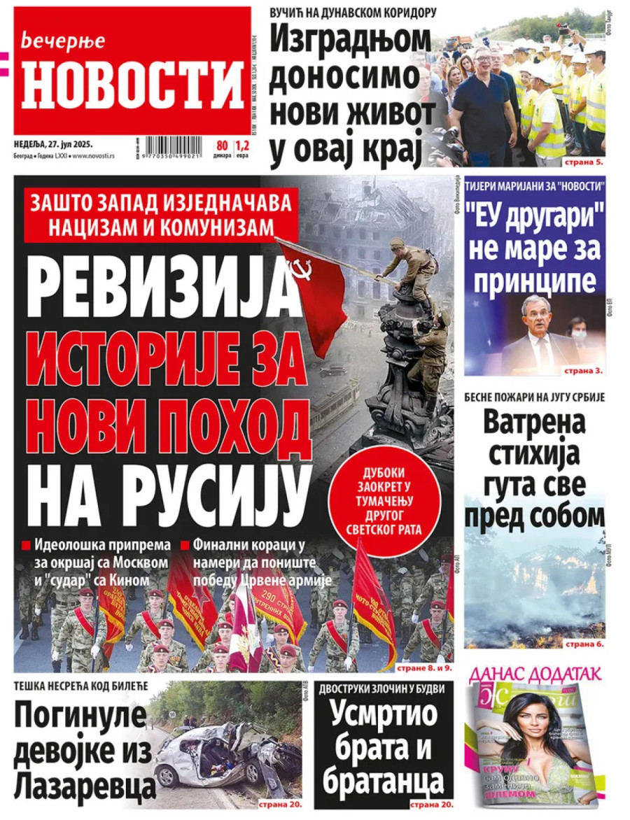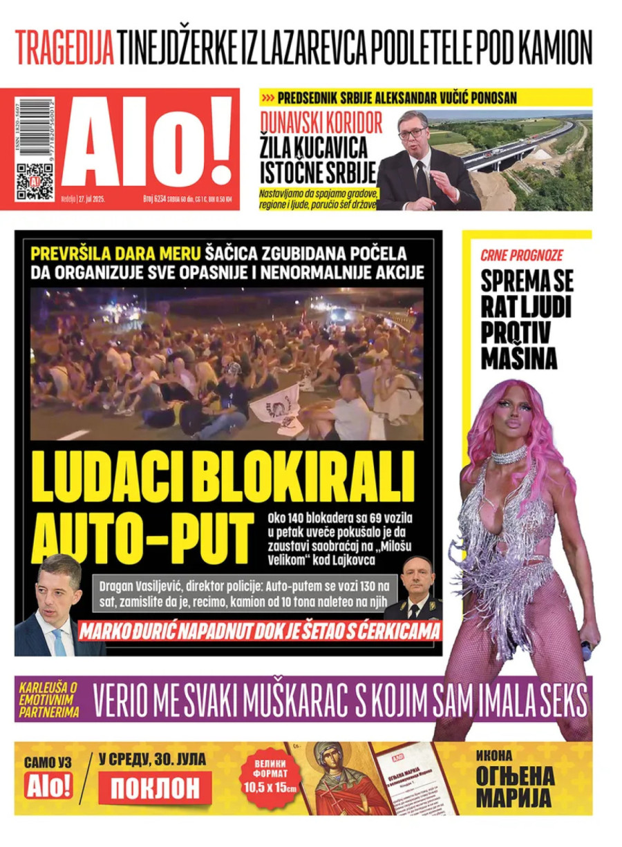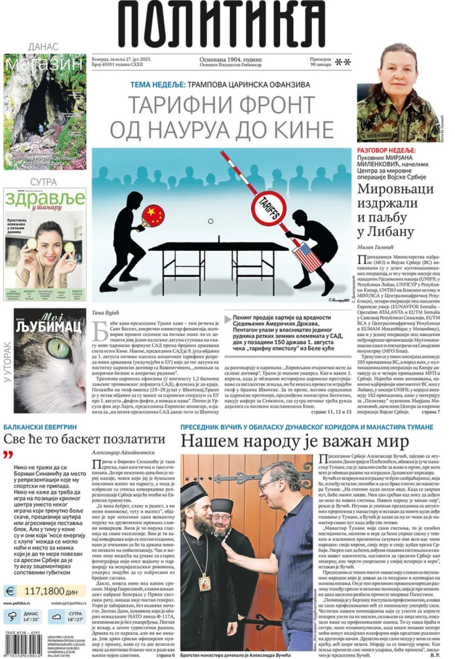 Dnevne novine u Srbiji za nedelju, 27. jul 2025. godine, na naslovnim stranama najavljuju brojne aktuelne društveno-političke teme i donose eksluzivne priče.