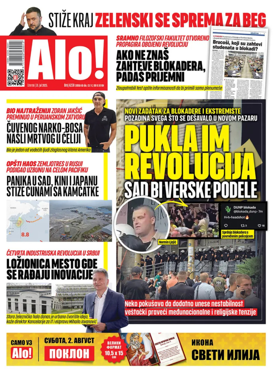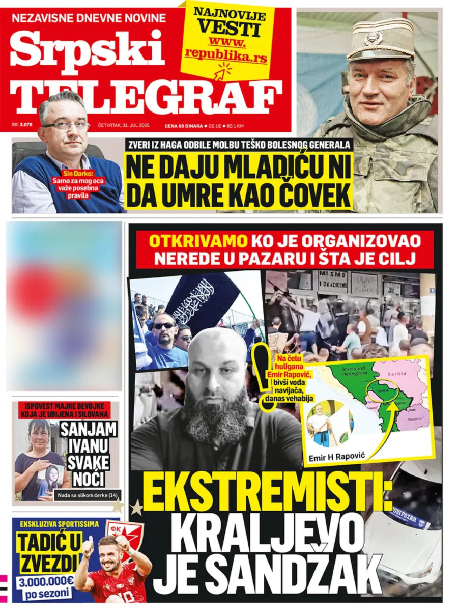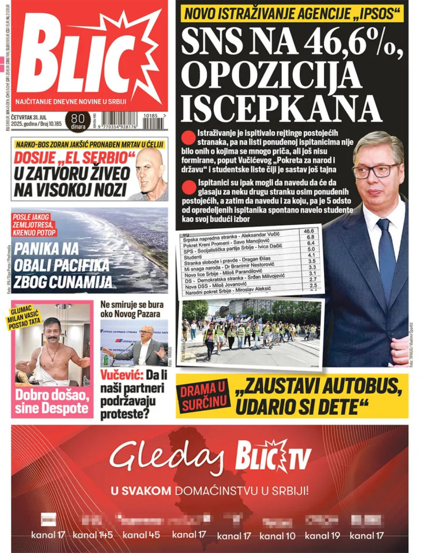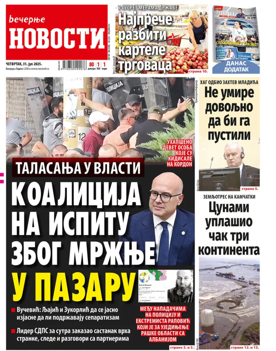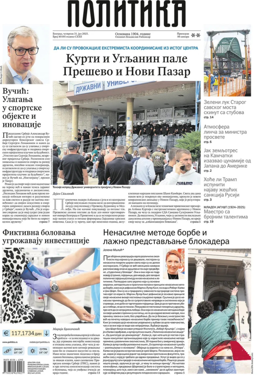 Dnevne novine u Srbiji za četvrtak, 31. jul 2025. godine, na naslovnim stranama najavljuju brojne aktuelne društveno-političke teme i donose eksluzivne priče.