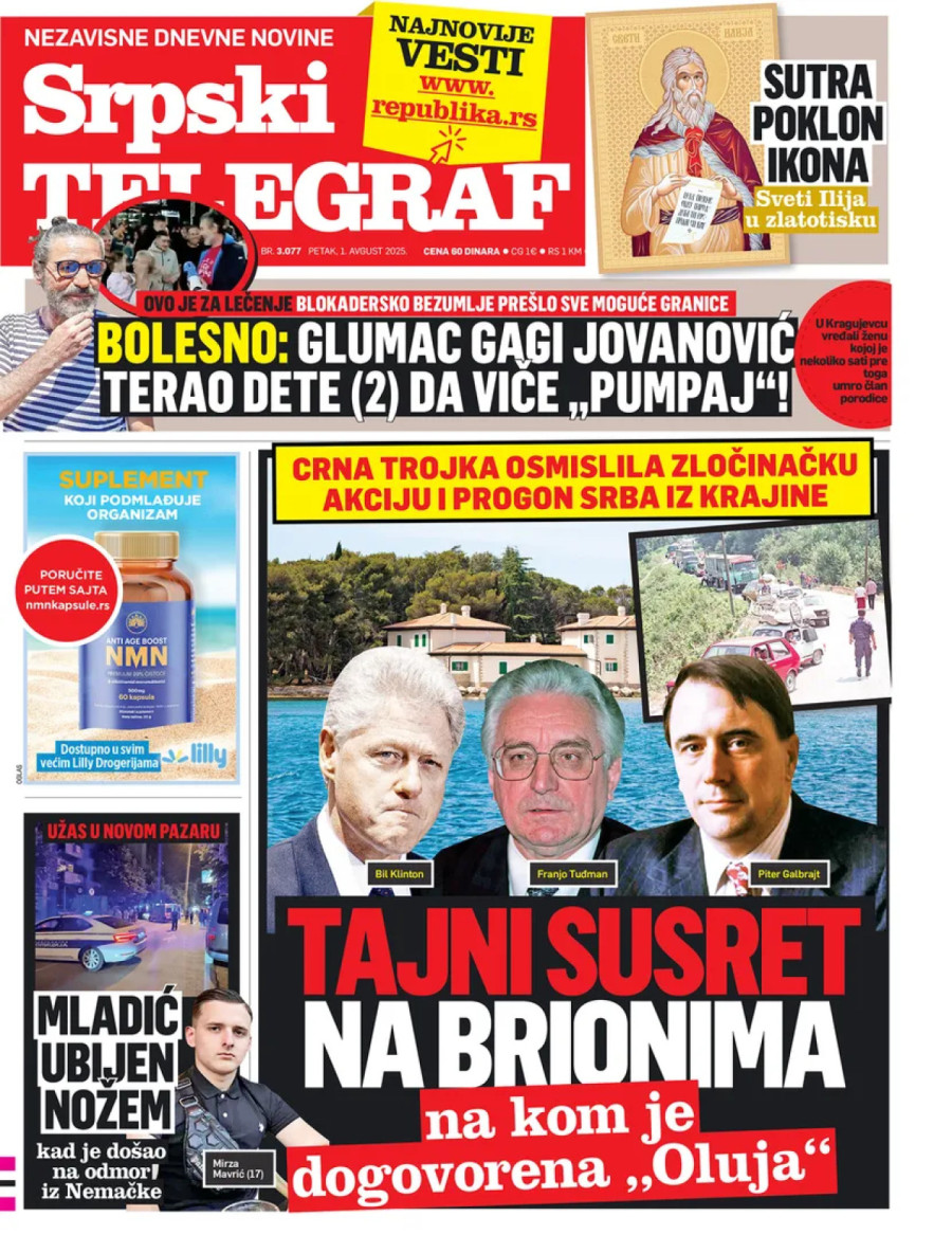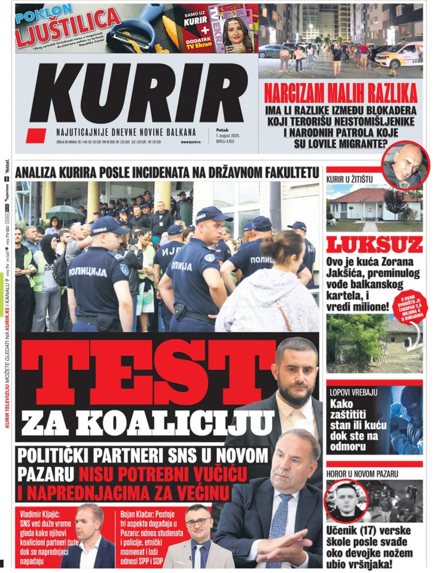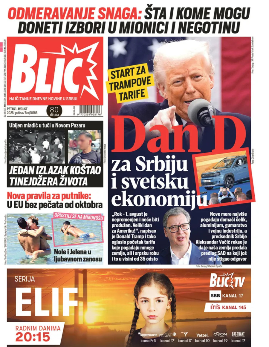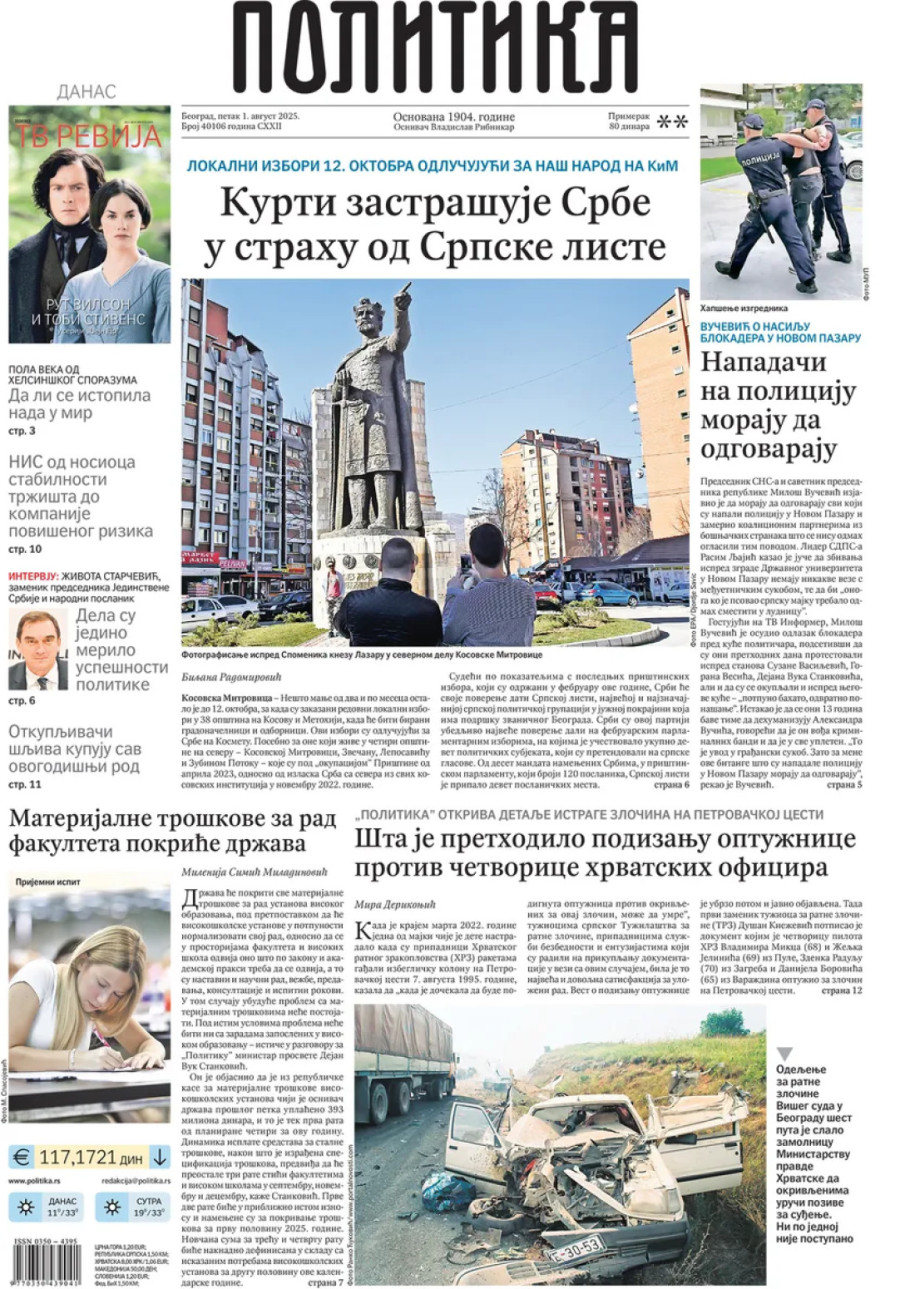 Novine: "Trobojka se ponovo zavijorila u Mitrovici"; "Prinudna uprava kuca na vrata NIS"