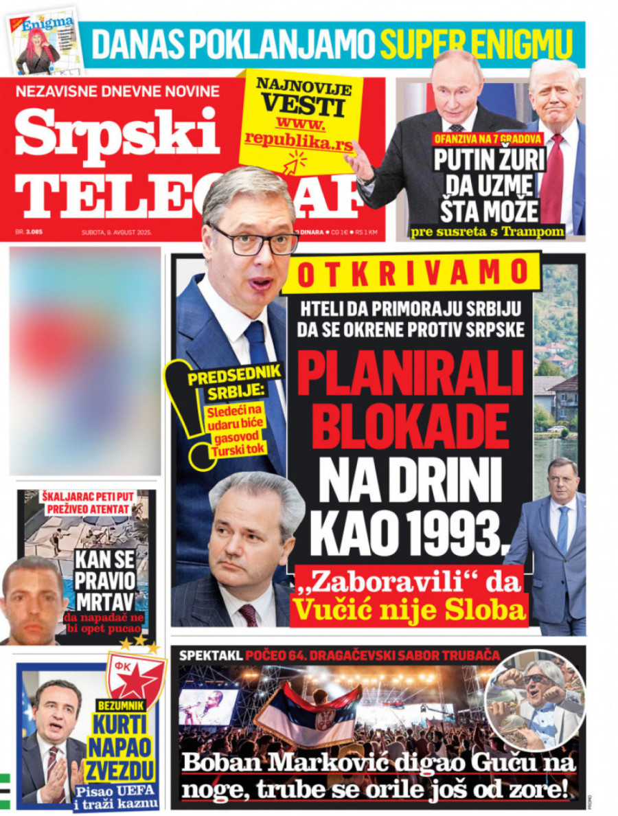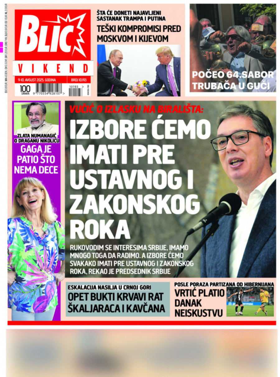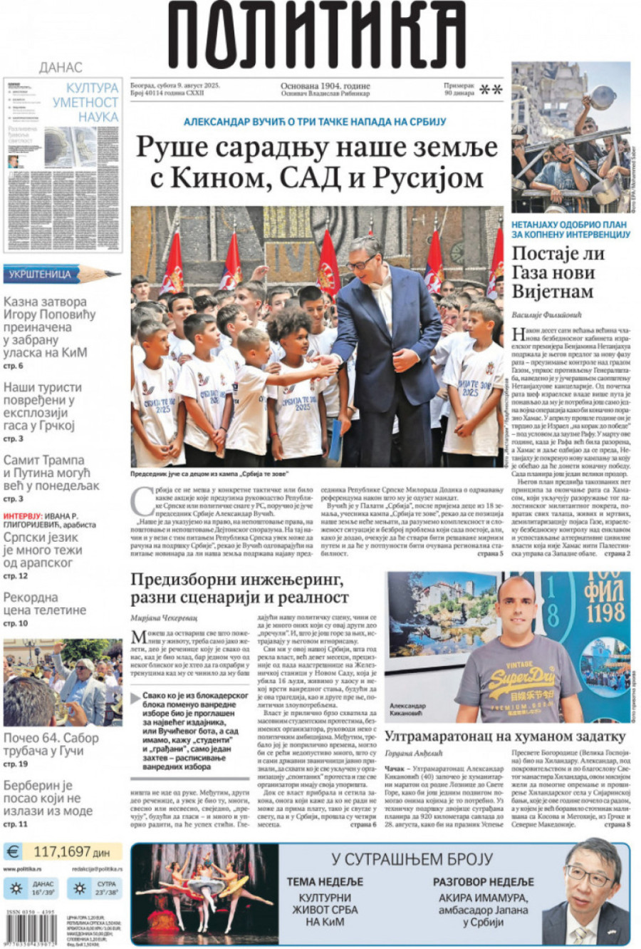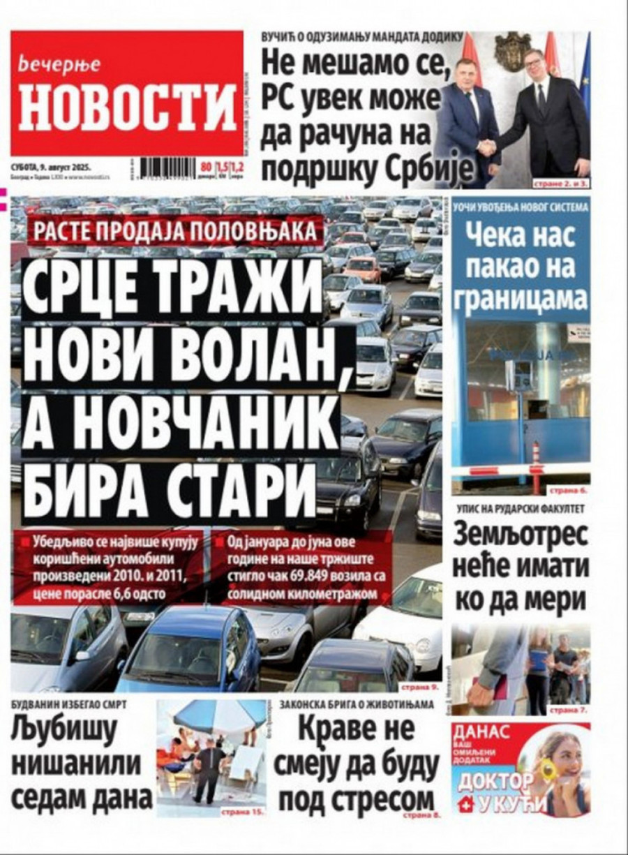 Dnevne novine u Srbiji za subotu, 9. avgust 2025. godine
