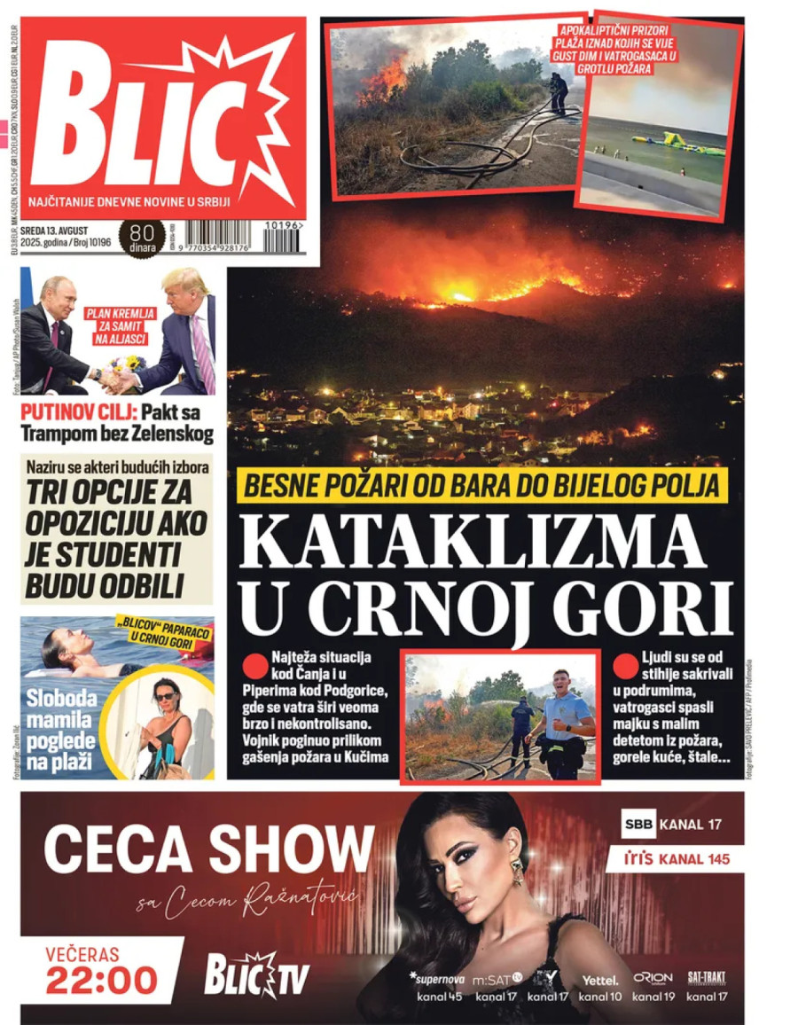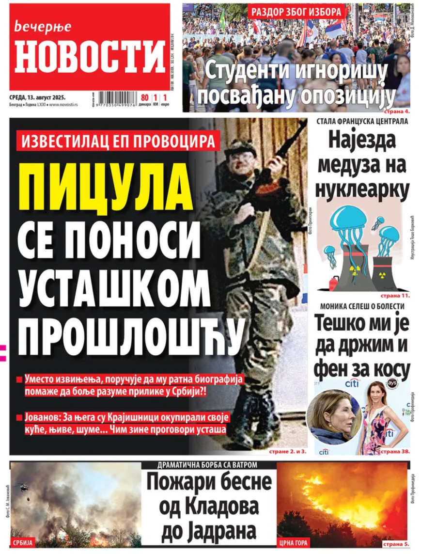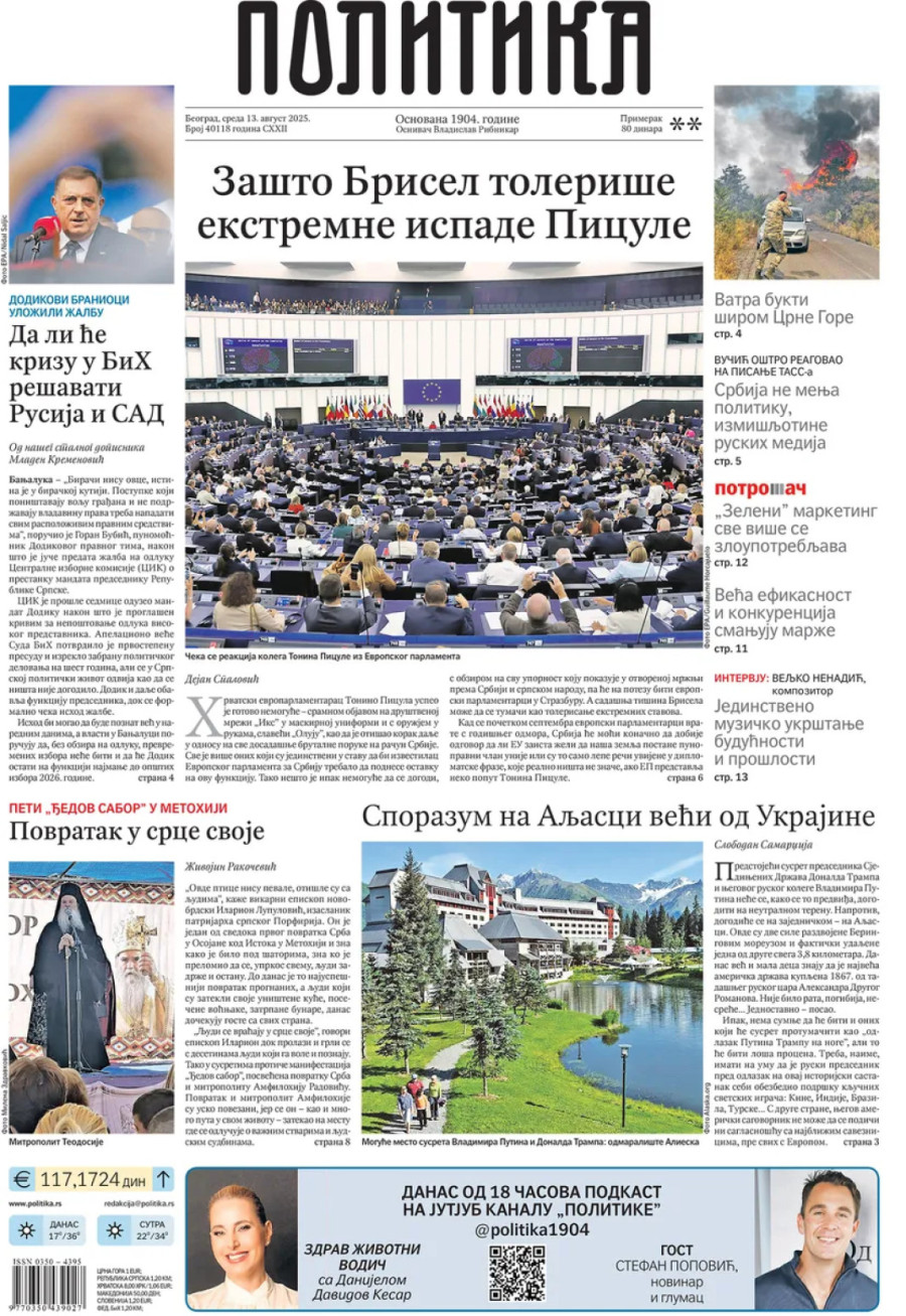 Dnevne novine u Srbiji za sredu, 13. avgust 2025. godine na naslovnim stranama najavljuju brojne aktuelne društveno-političke teme i donose eksluzivne priče.