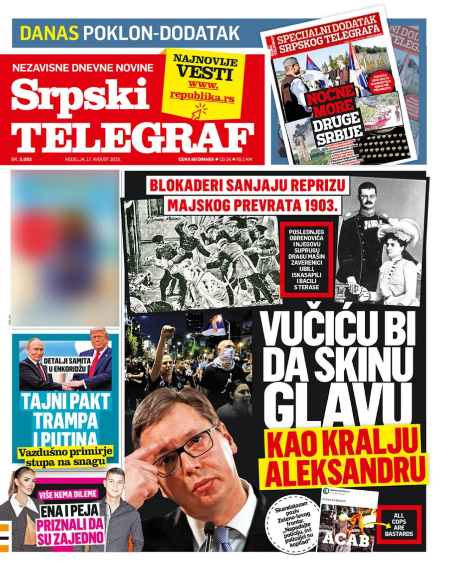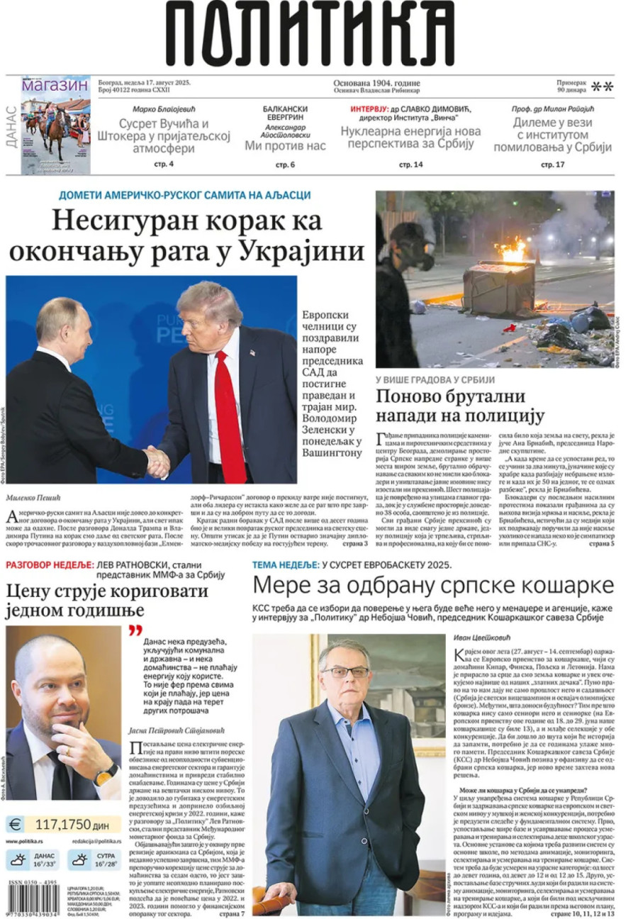 Dnevne novine u Srbiji za nedelju, 17. avgust 2025. godine na naslovnim stranama najavljuju brojne aktuelne društveno-političke teme i donose eksluzivne priče.