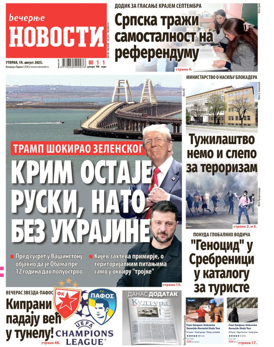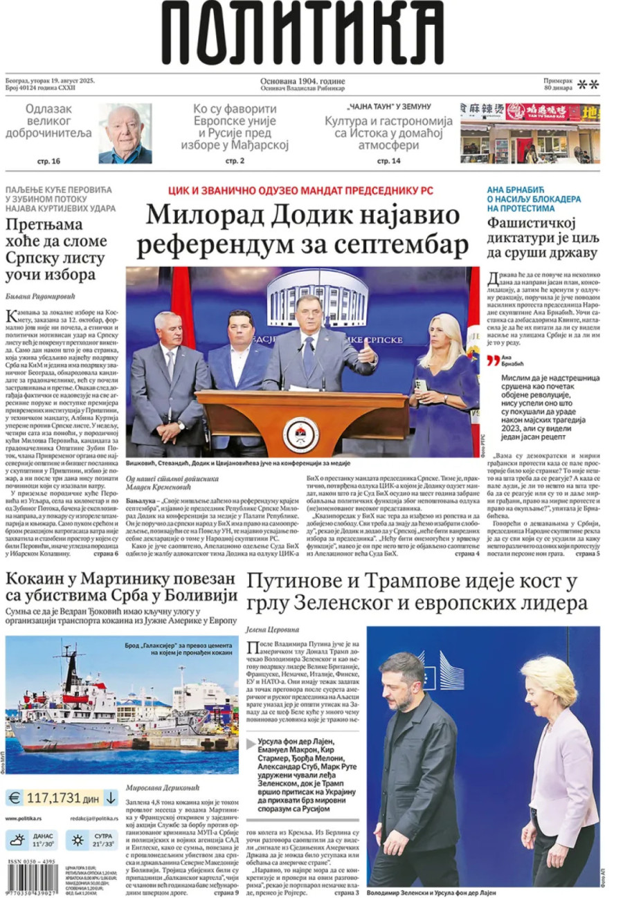Dnevne novine u Srbiji za 19. avgust 2025. godine