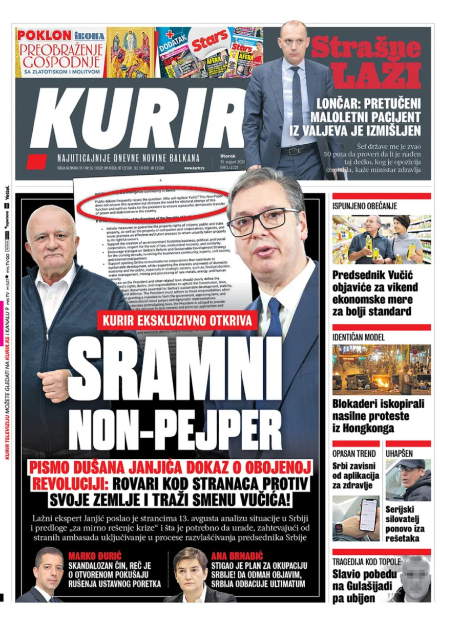 Dnevne novine u Srbiji za utorak, 19. avgust 2025. godine na naslovnim stranama najavljuju brojne aktuelne društveno-političke teme i donose eksluzivne priče.