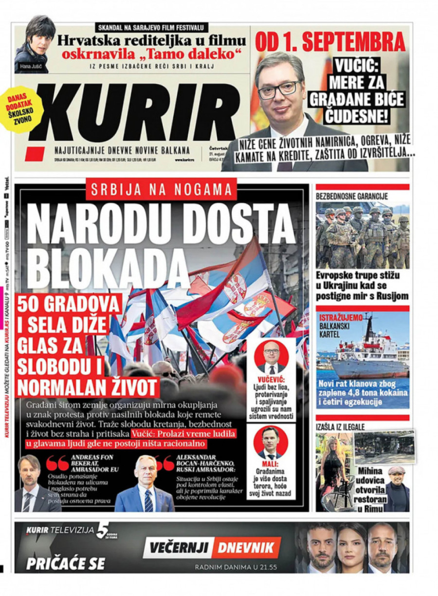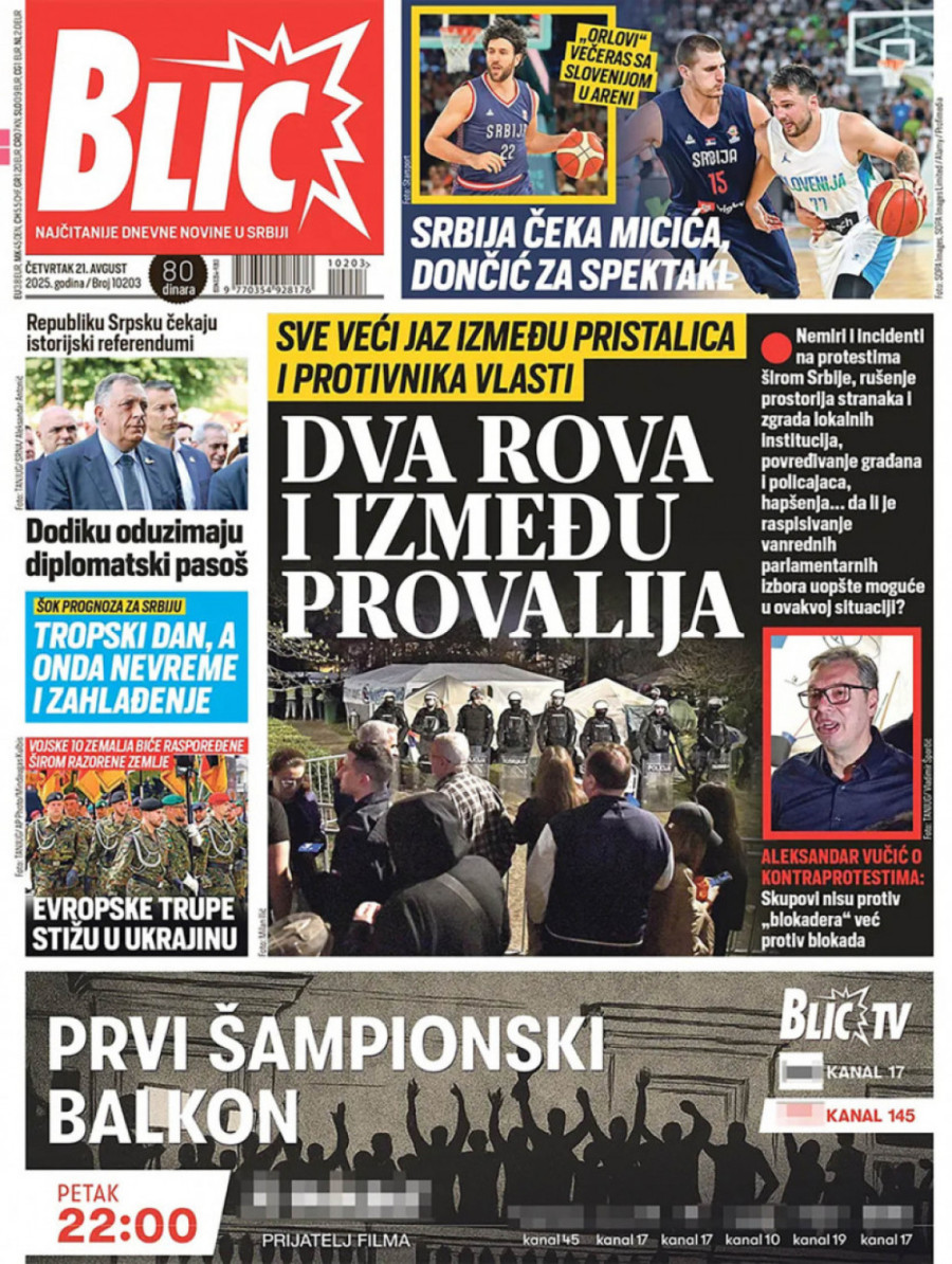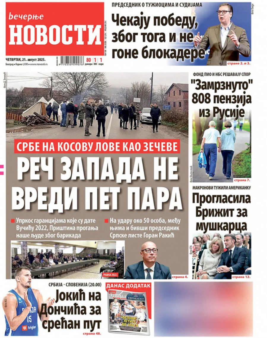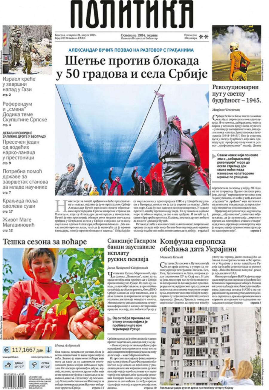 Dnevne novine u Srbiji za četvrtak, 21. avgust 2025. godine