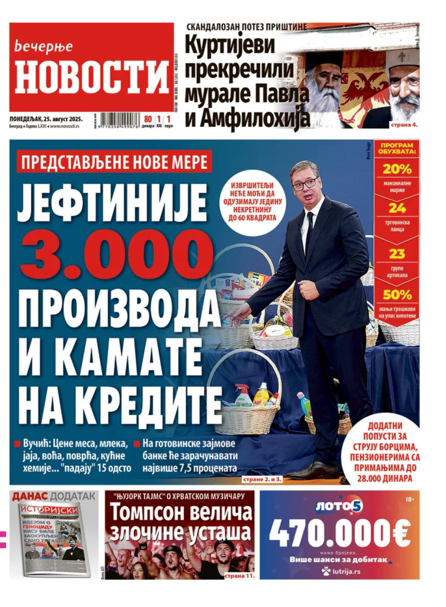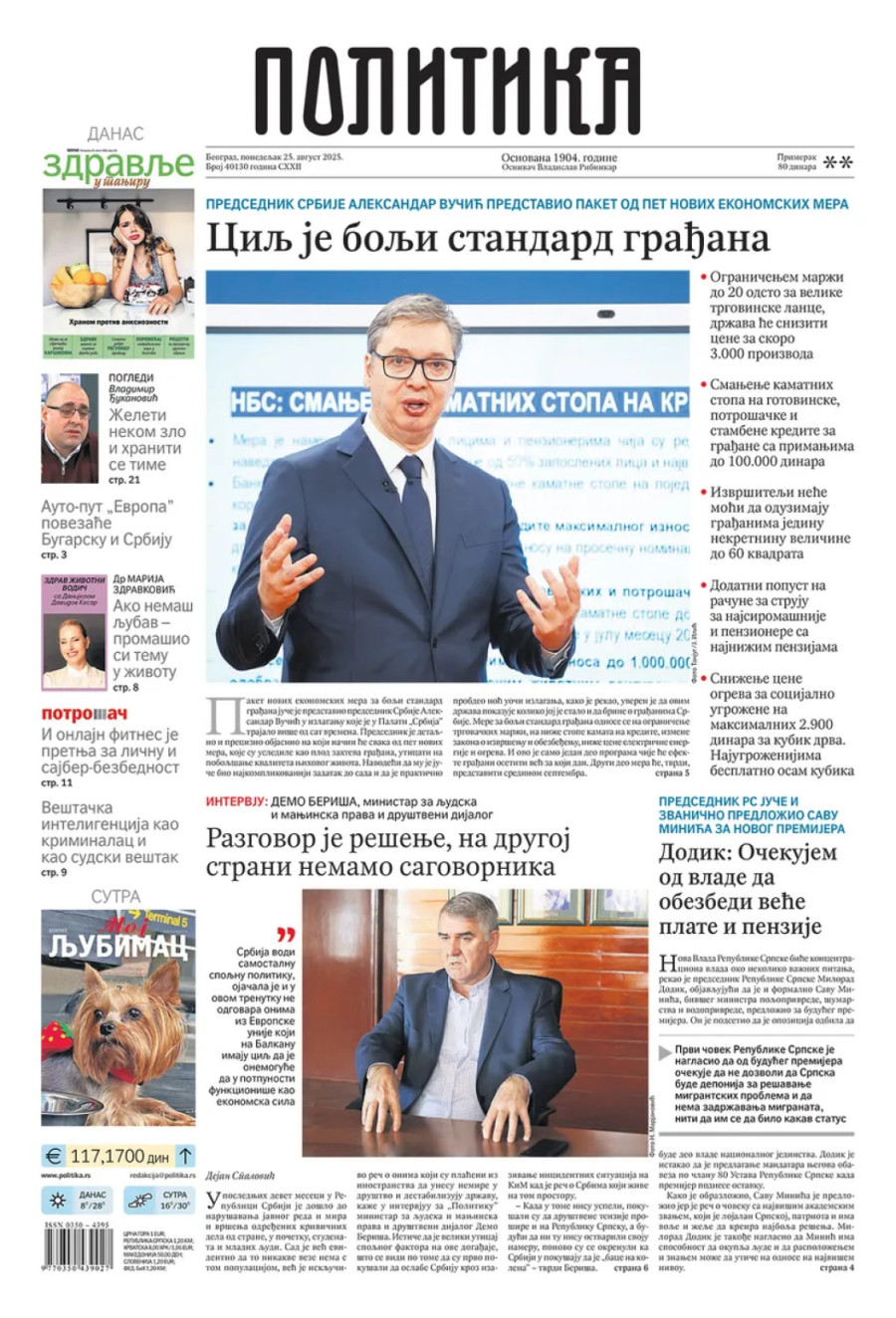 Dnevne novine u Srbiji za ponedeljak, 25. avgust 2025. godine