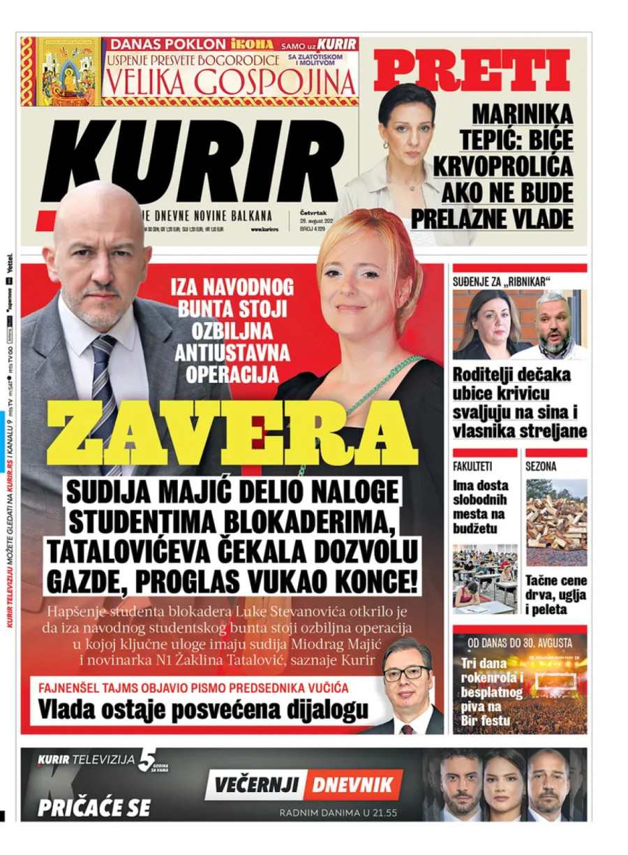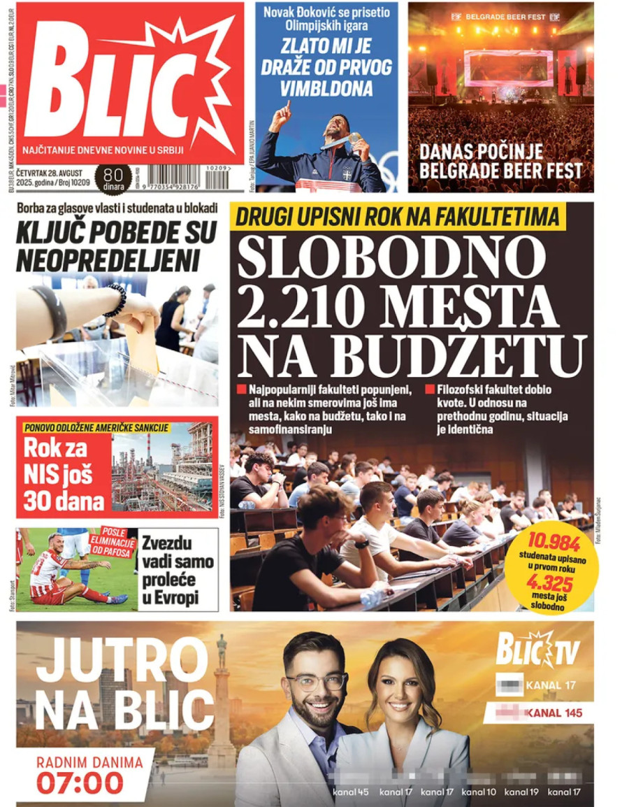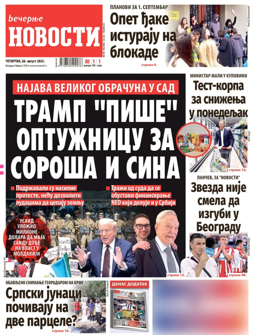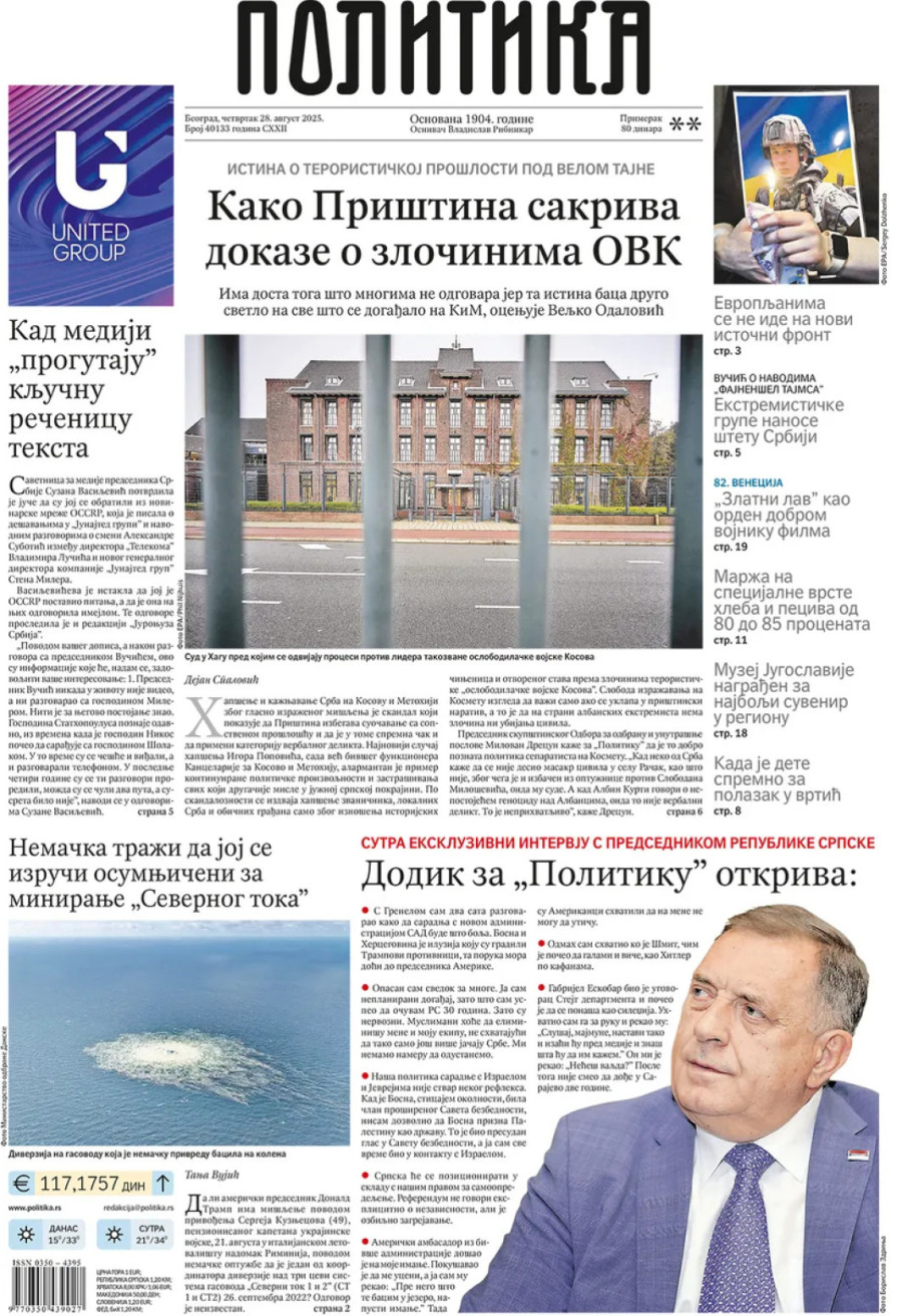 Dnevne novine u Srbiji za četvrtak, 28. avgust 2025. godine na naslovnim stranama najavljuju brojne aktuelne društveno-političke teme i donose eksluzivne priče.