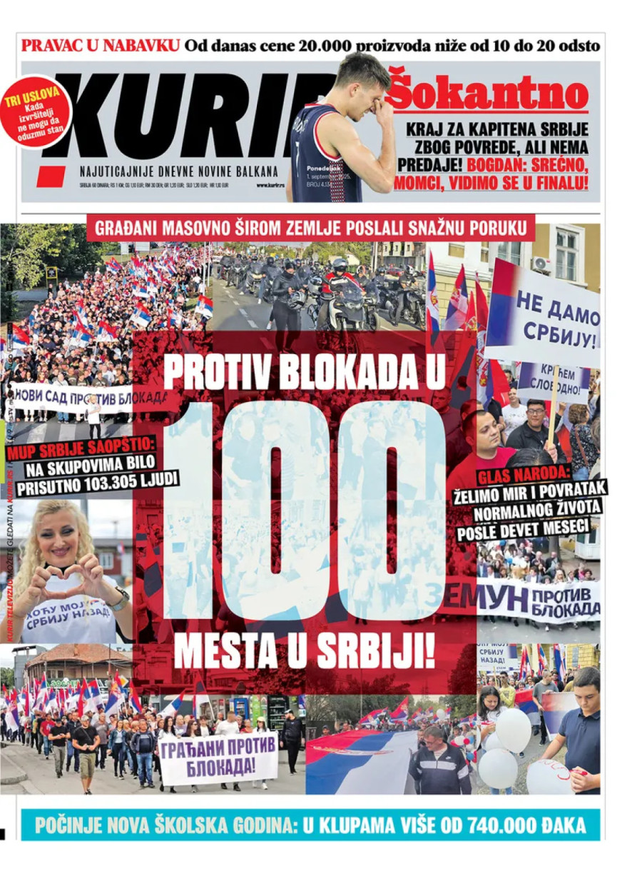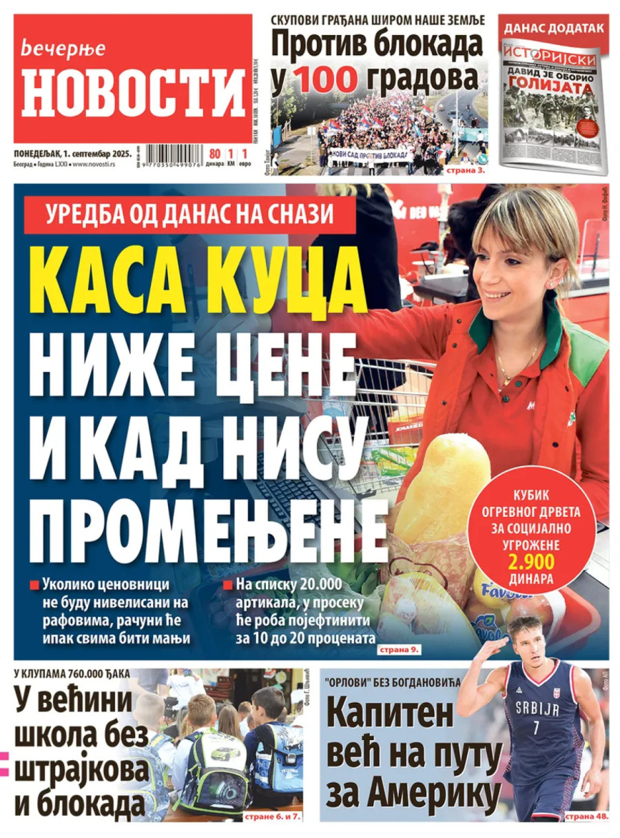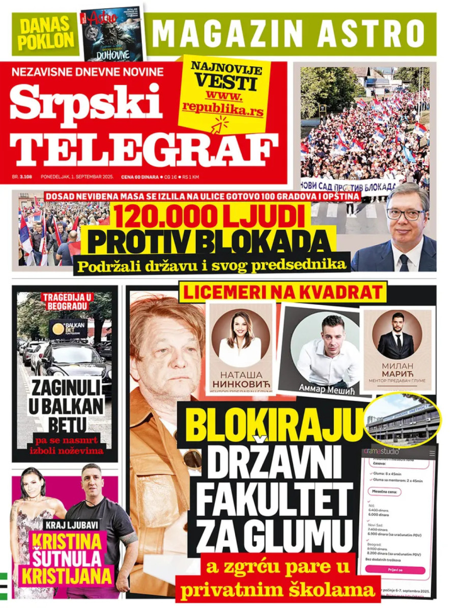 Dnevne novine u Srbiji za ponedeljak, 1. septembar 2025. godine na naslovnim stranama najavljuju brojne aktuelne društveno-političke teme i donose eksluzivne priče.