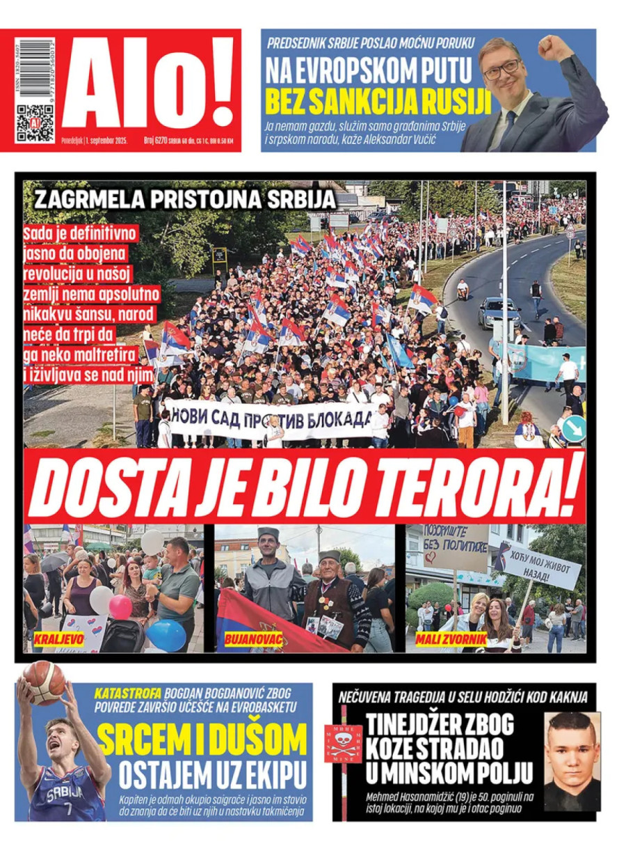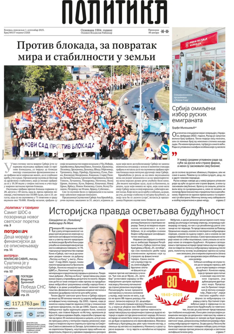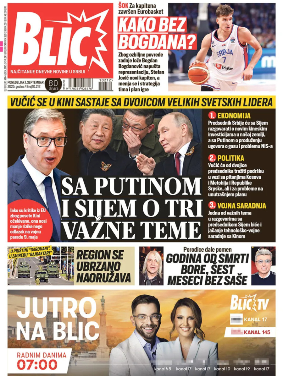 Dnevne novine u Srbiji za ponedeljak, 1. septembar 2025. godine na naslovnim stranama najavljuju brojne aktuelne društveno-političke teme i donose eksluzivne priče.
