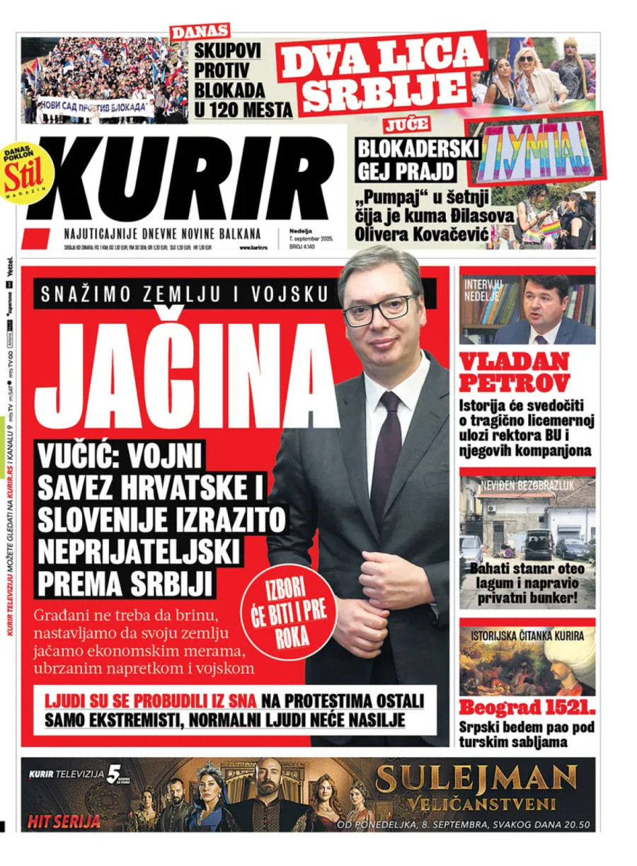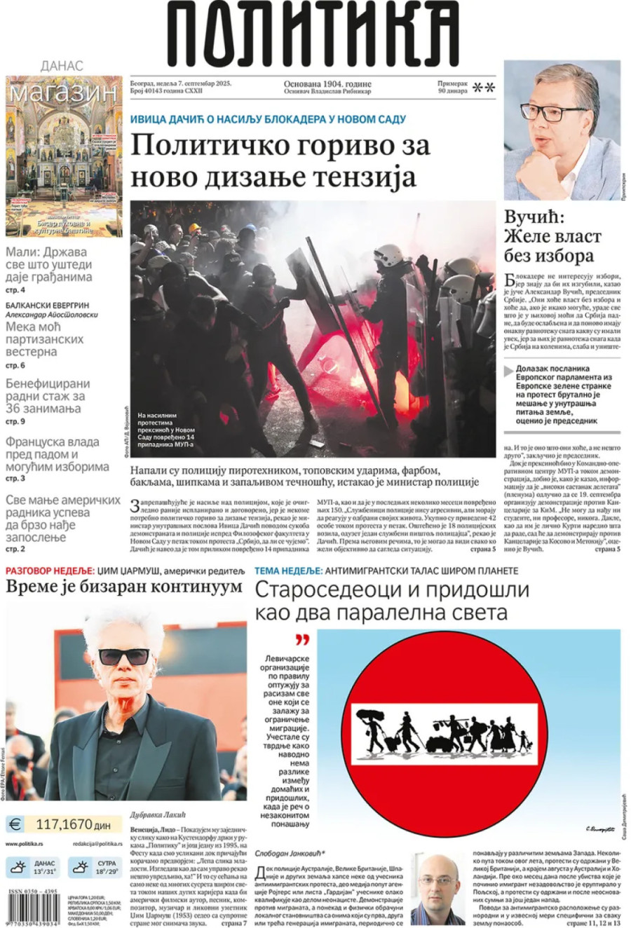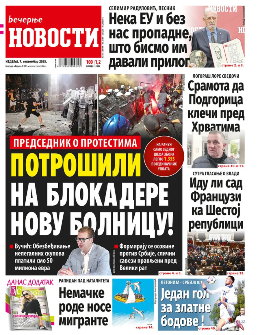 Dnevne novine u Srbiji za nedelju, 7. septembar 2025. godine na naslovnim stranama najavljuju brojne aktuelne društveno-političke teme i donose eksluzivne priče.