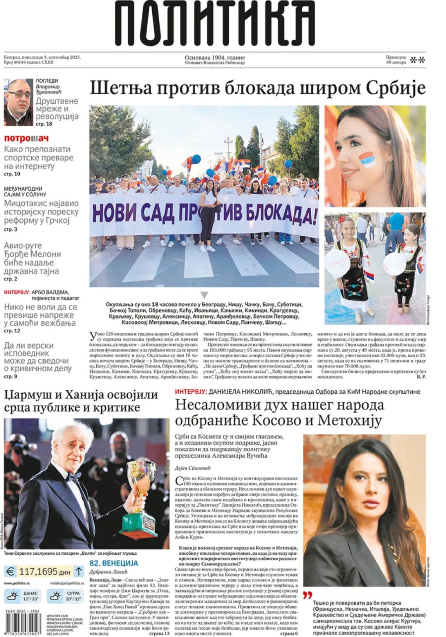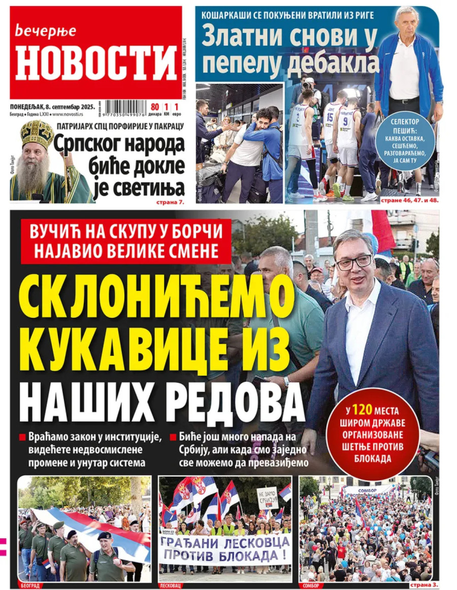 Dnevne novine u Srbiji za ponedeljak, 8. septembar 2025. godine