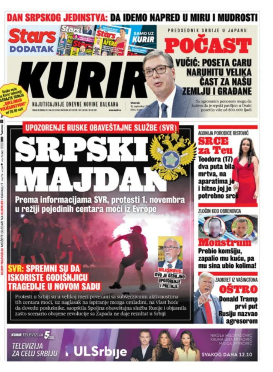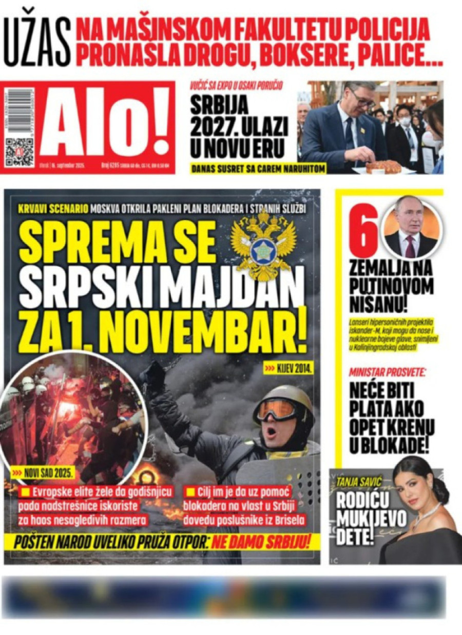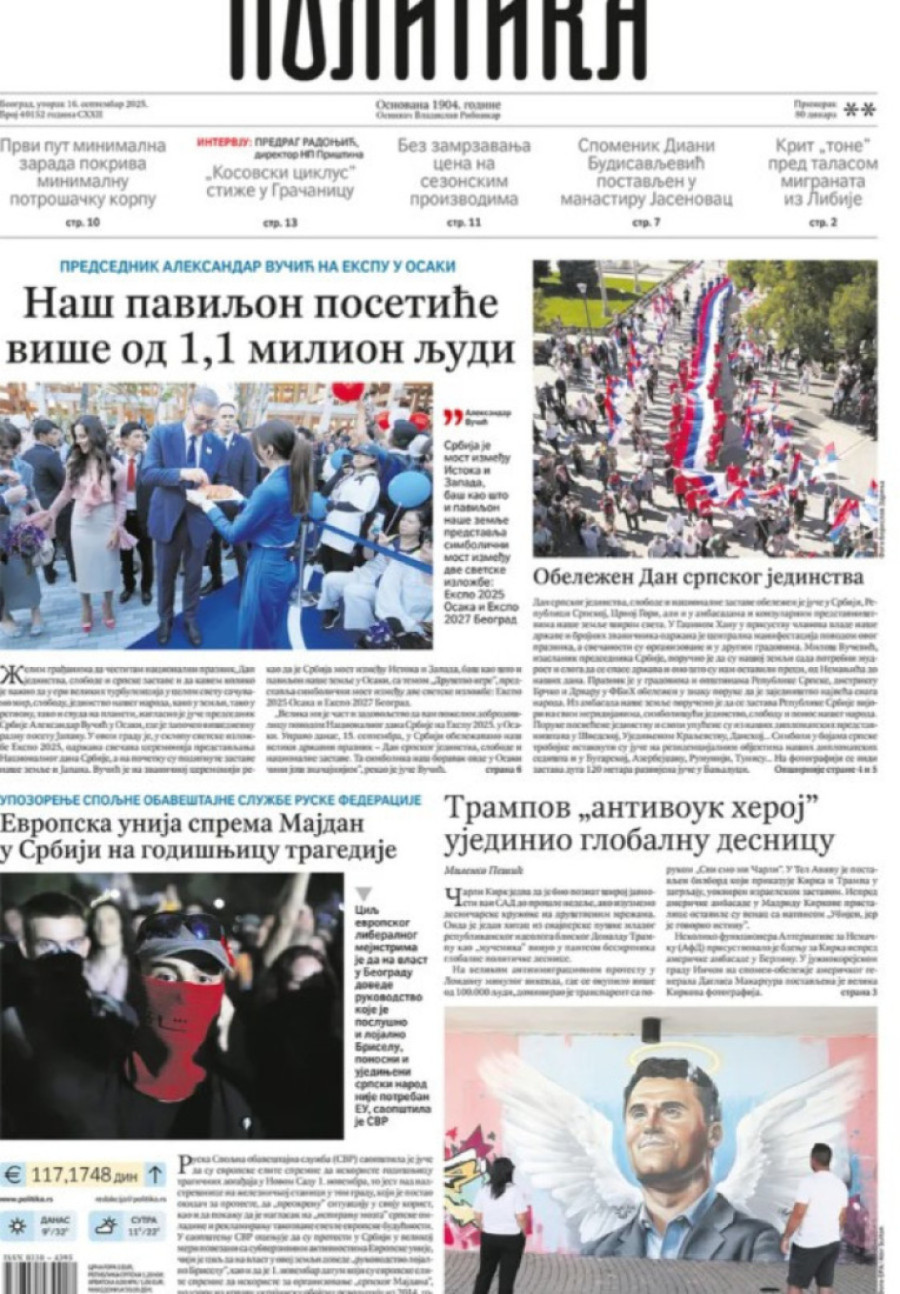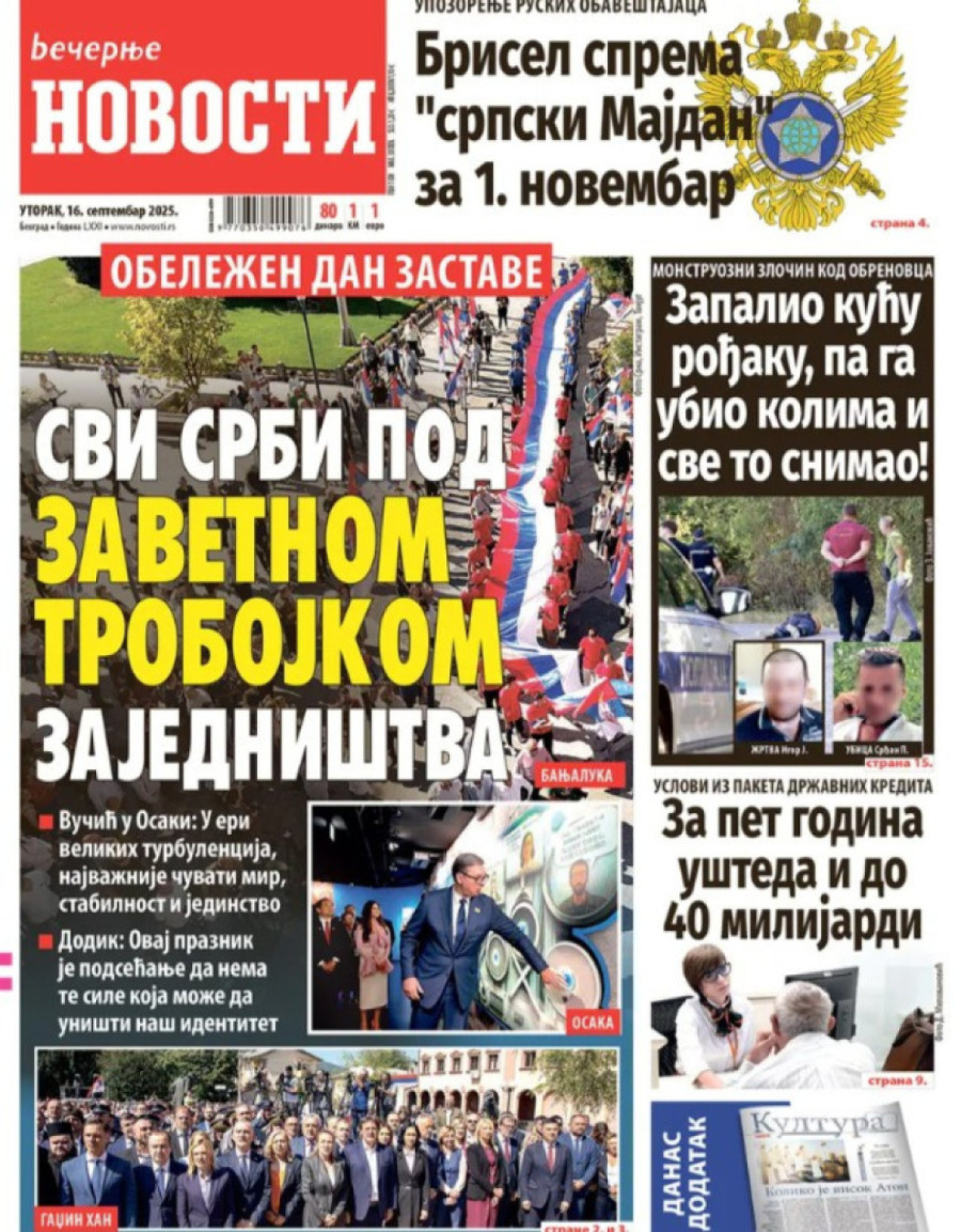 Dnevne novine u Srbiji za utorak, 16. septembar 2025. godine na naslovnim stranama najavljuju brojne aktuelne društveno-političke teme i donose eksluzivne priče.