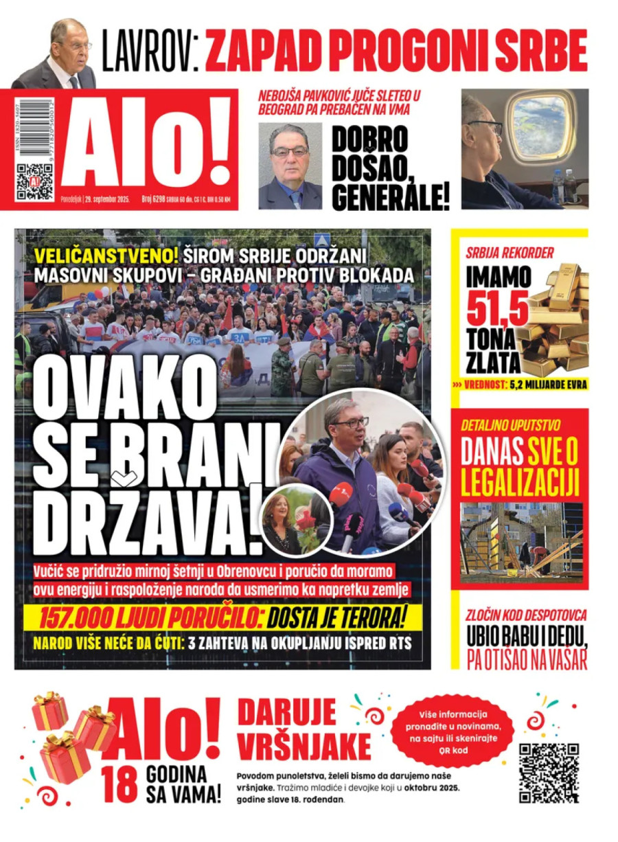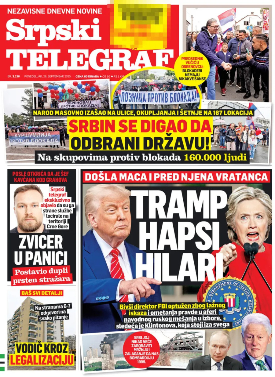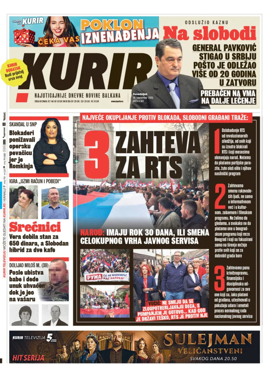 Dnevne novine u Srbiji za ponedeljak, 29. septembar 2025. godine na naslovnim stranama najavljuju brojne aktuelne društveno-političke teme i donose eksluzivne priče.