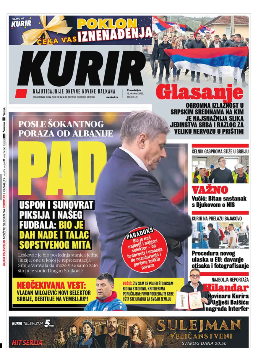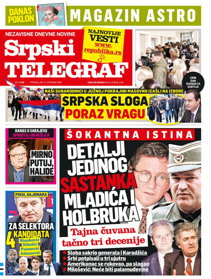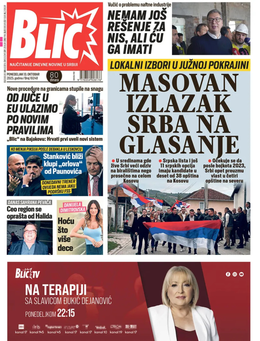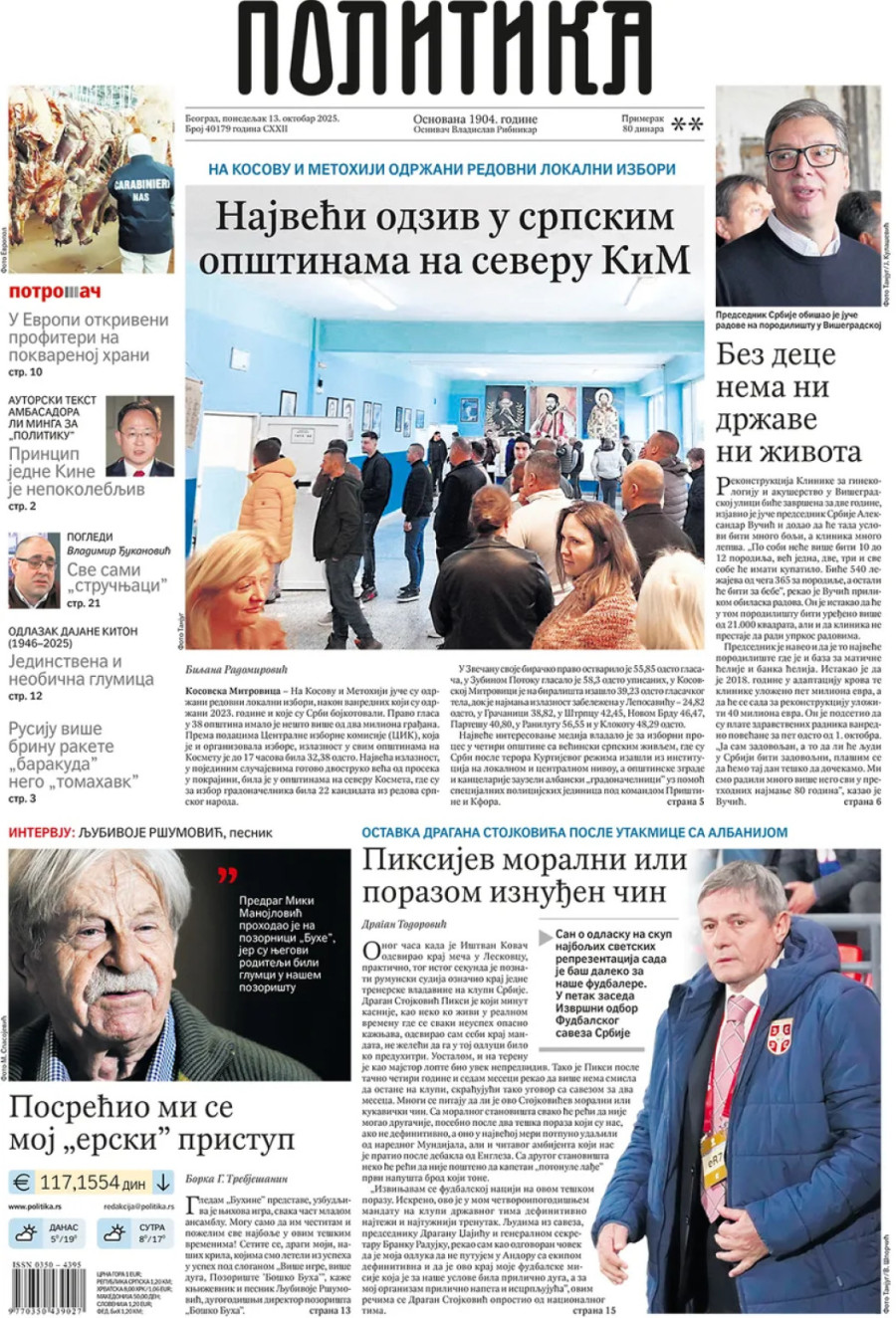 Dnevne novine u Srbiji za ponedeljak, 13. oktobar 2025. godine