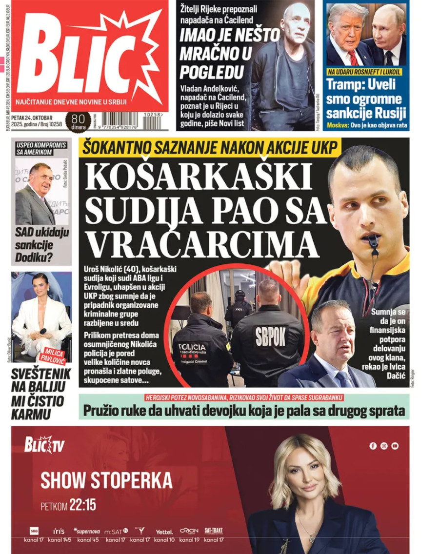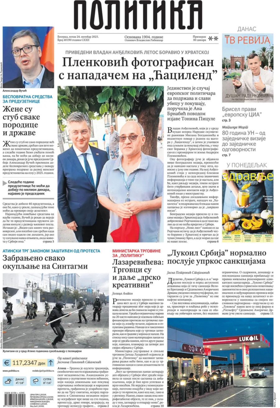 Dnevne novine u Srbiji za petak, 24. oktobar 2025. godine na naslovnim stranama najavljuju brojne aktuelne društveno-političke teme i donose eksluzivne priče.