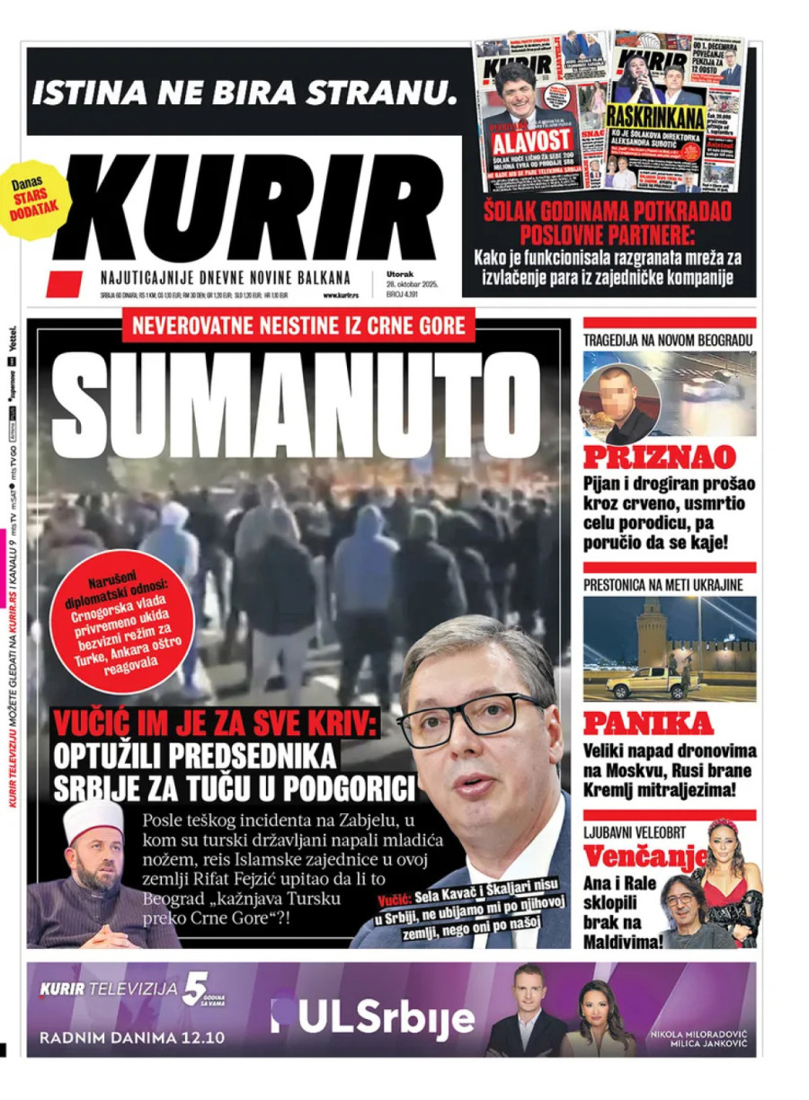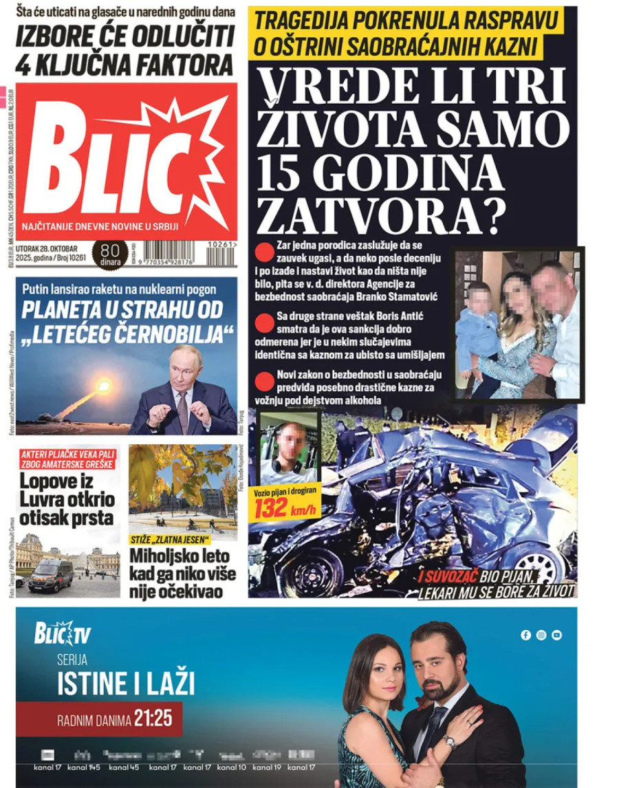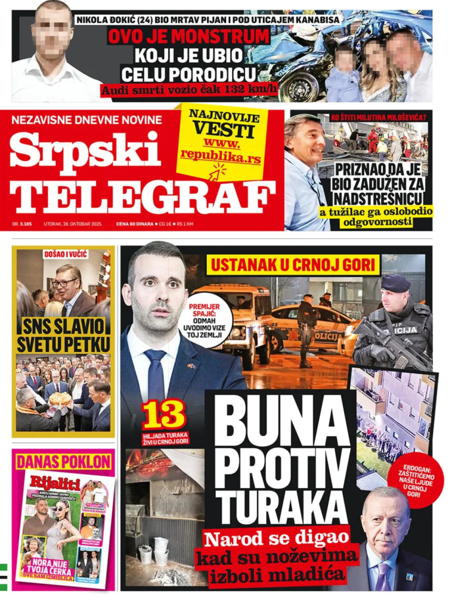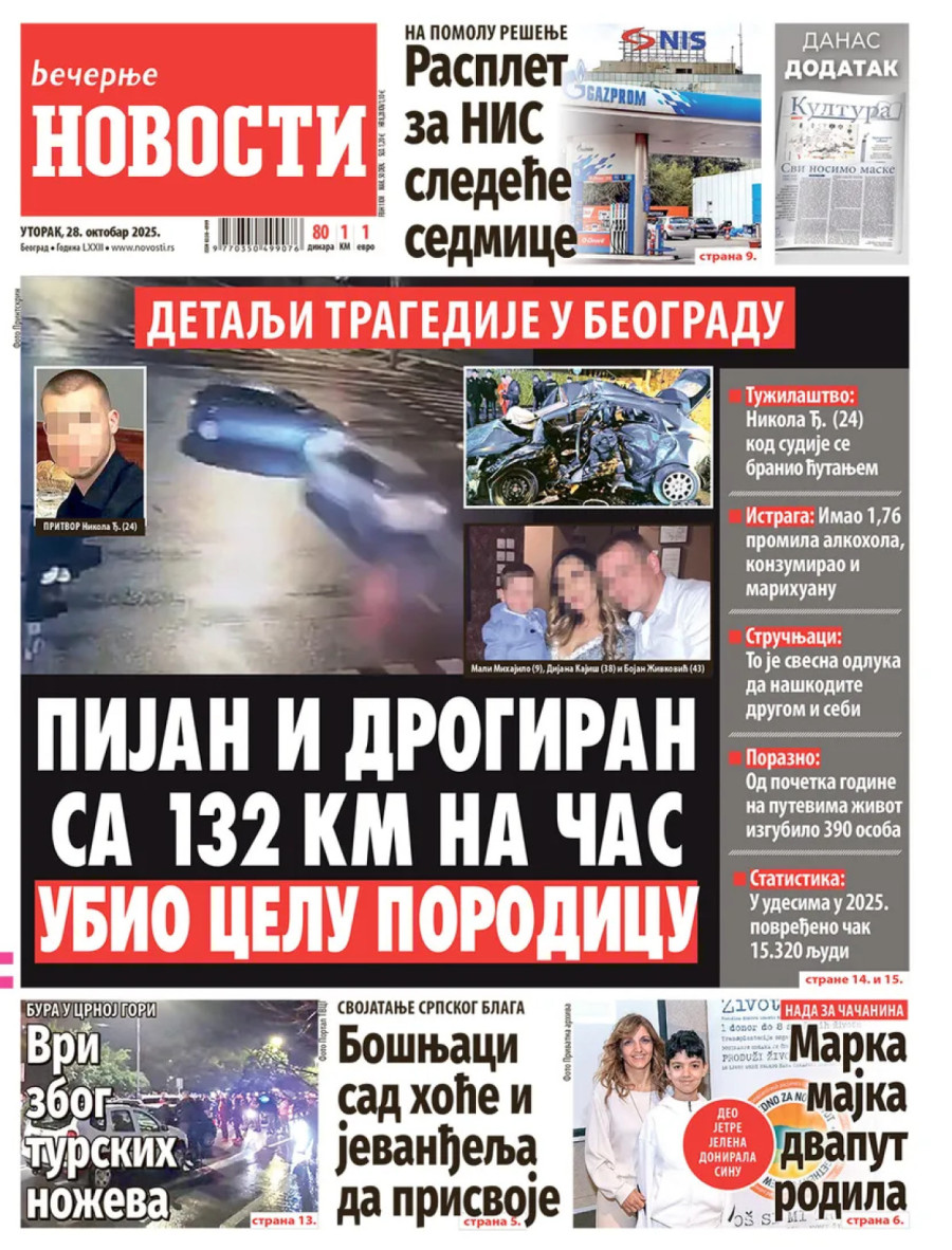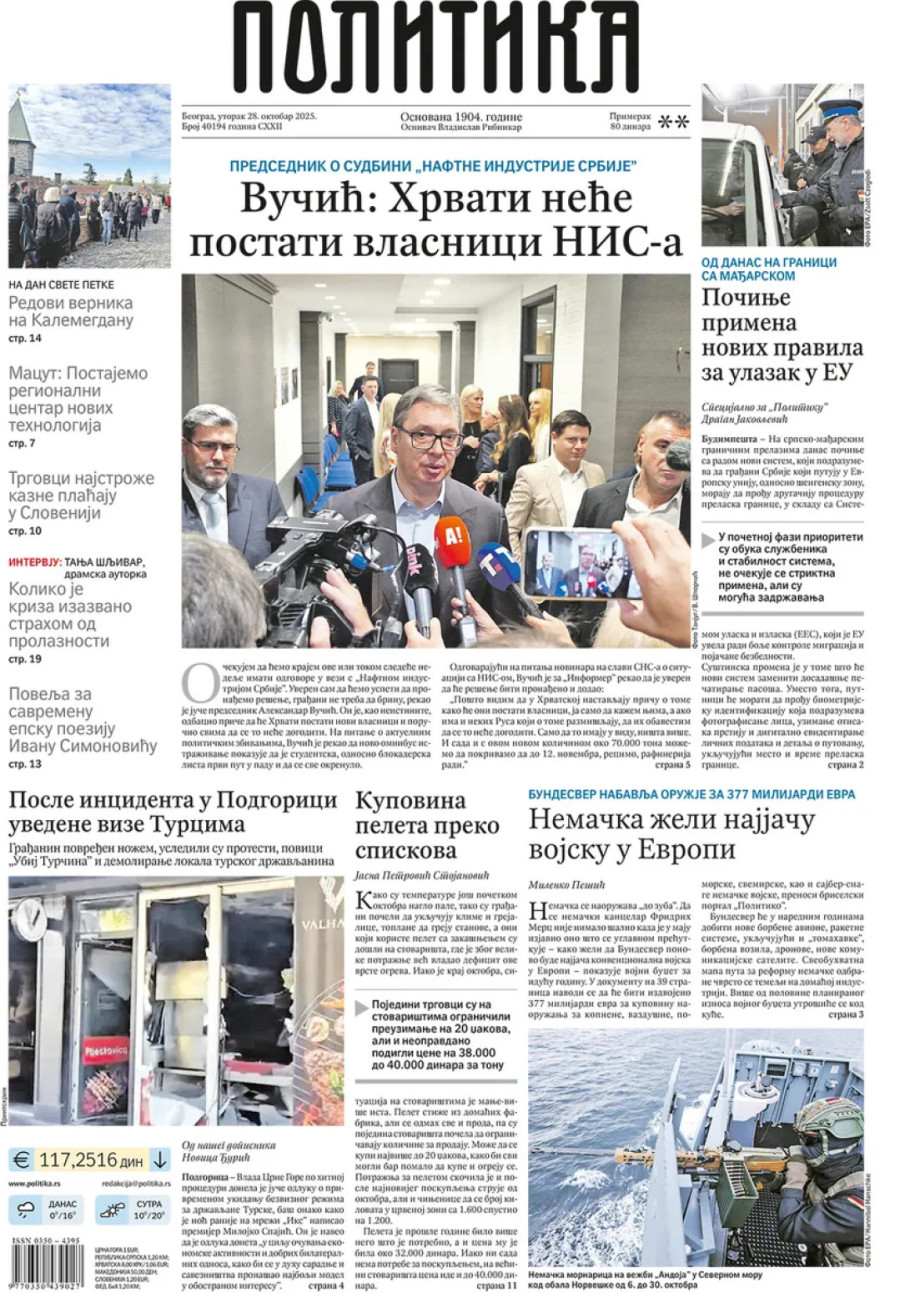 Dnevne novine u Srbiji za utorak, 28. oktobar 2025. godine
