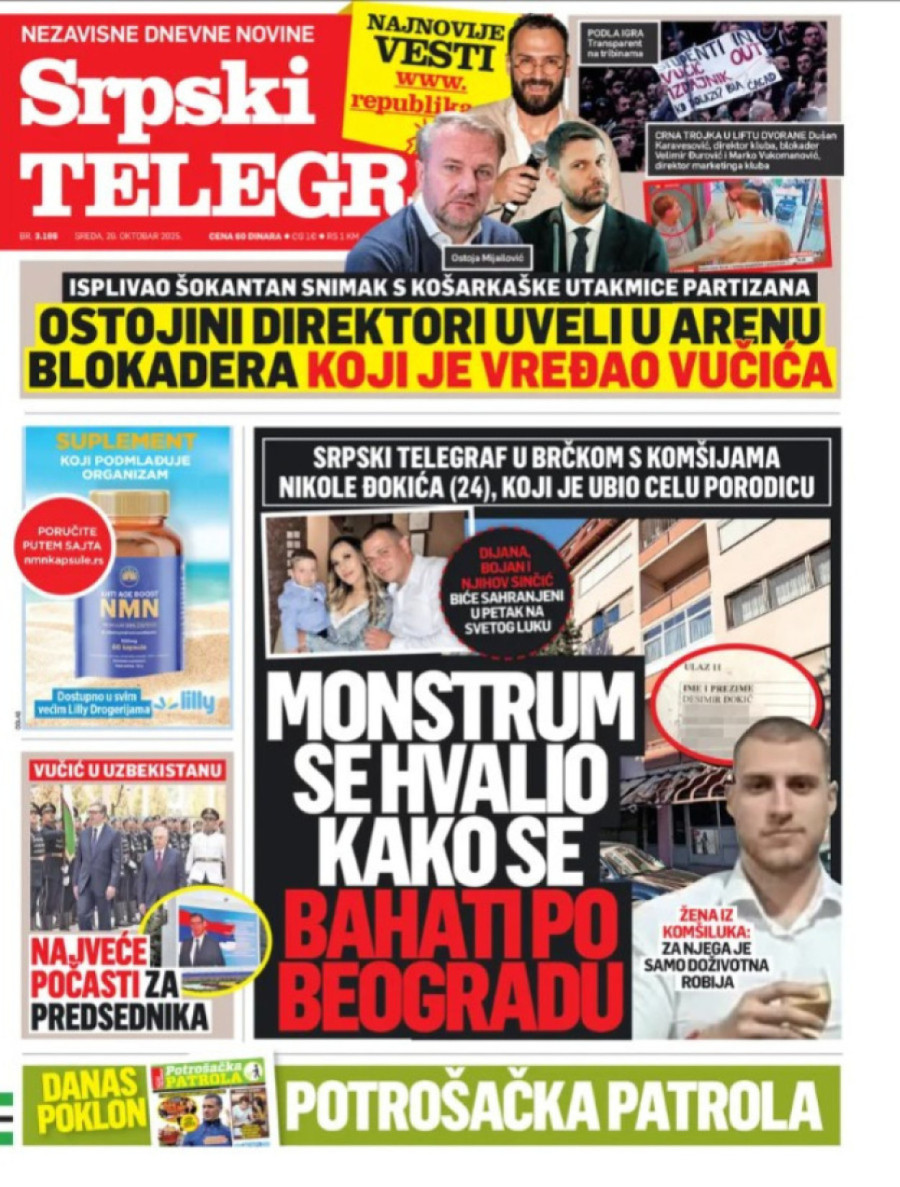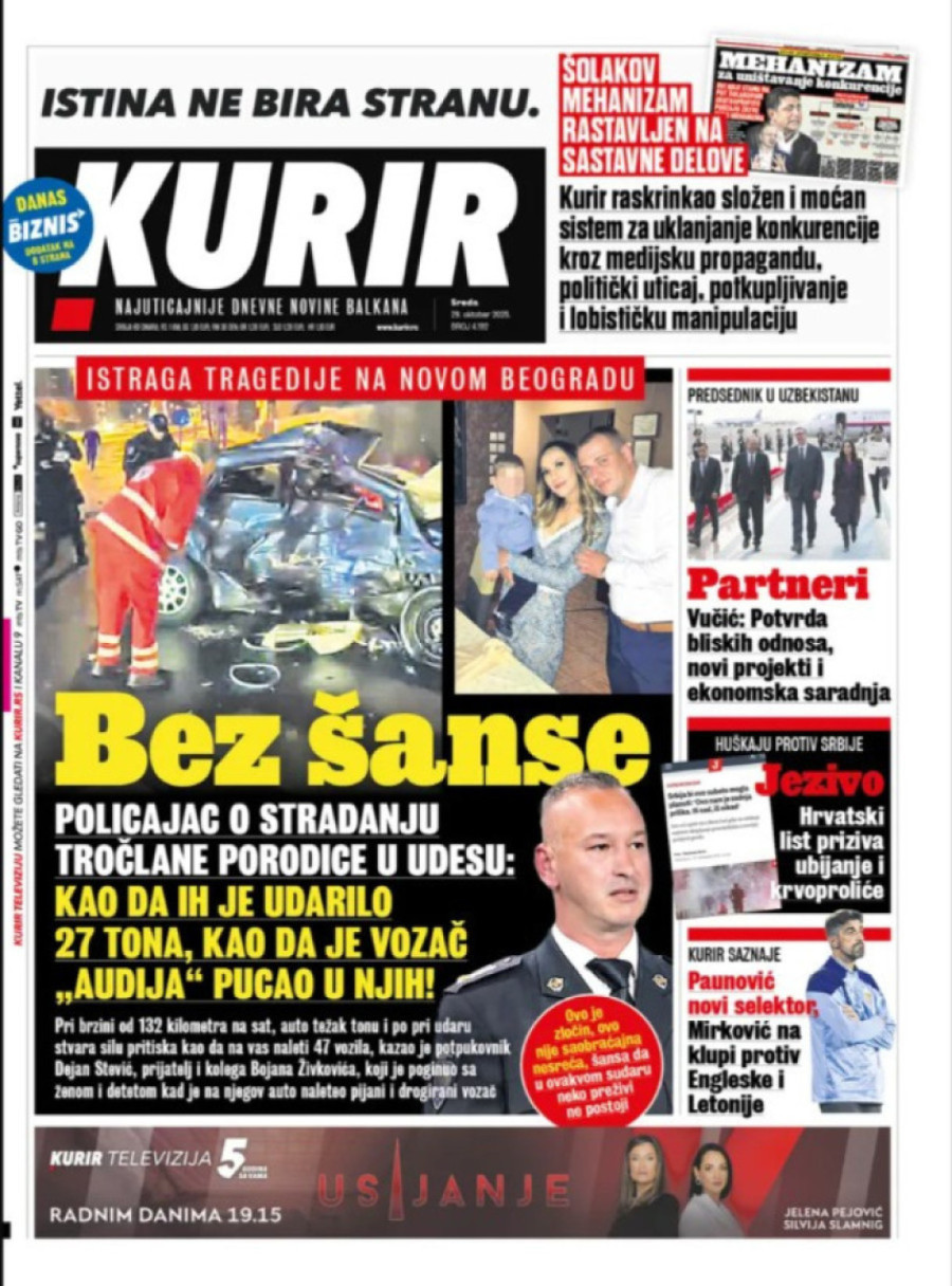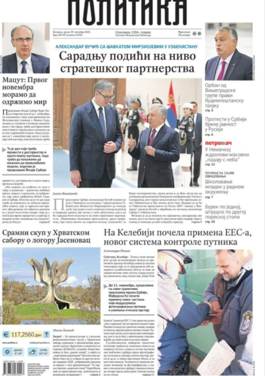 Dnevne novine u Srbiji za sredu, 29. oktobar 2025. godine na naslovnim stranama najavljuju brojne aktuelne društveno-političke teme i donose eksluzivne priče.