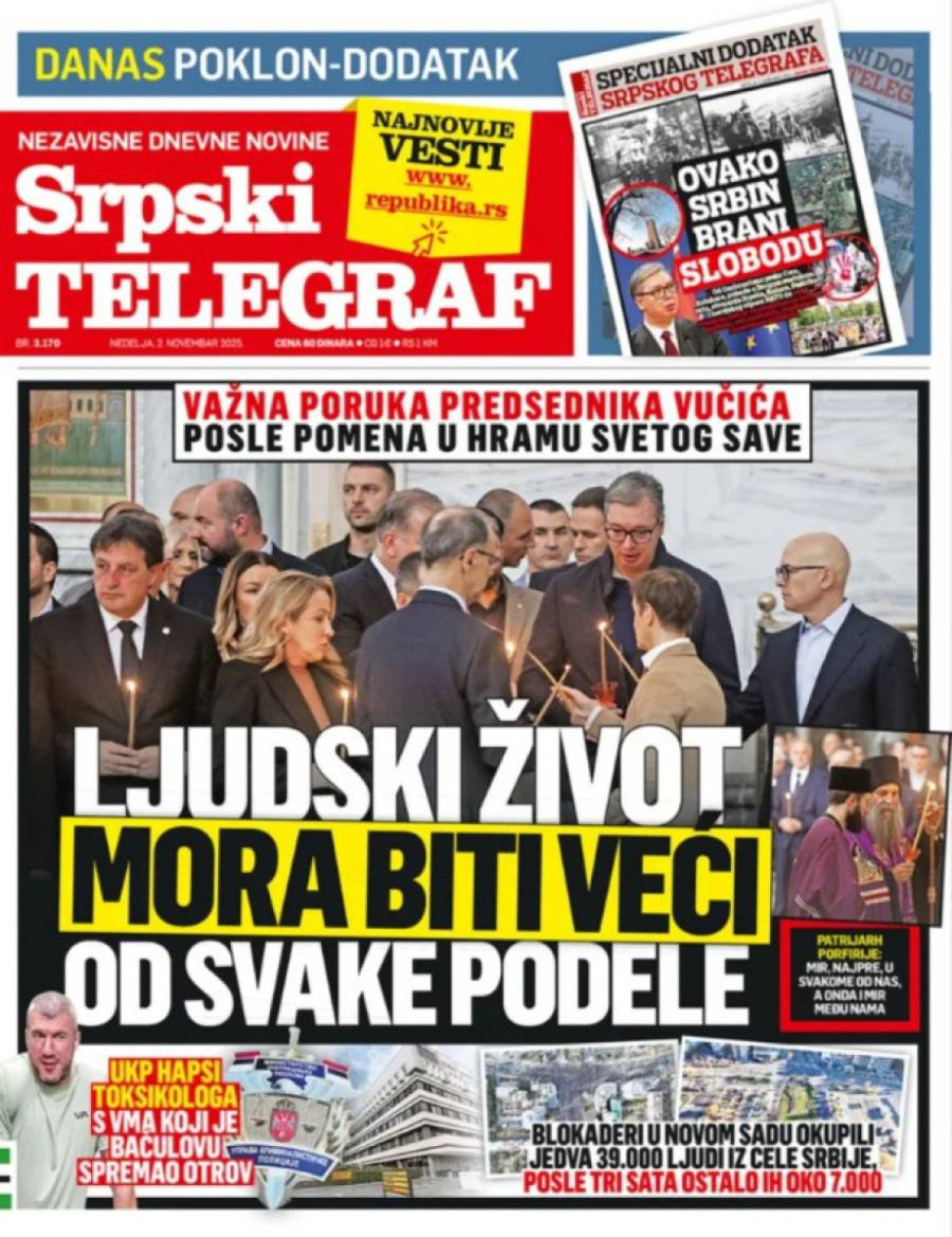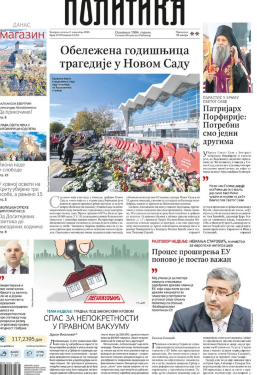 Dnevne novine u Srbiji za nedelju, 2. novembar 2025. godine, na naslovnim stranama najavljuju brojne aktuelne društveno-političke teme i donose eksluzivne priče.